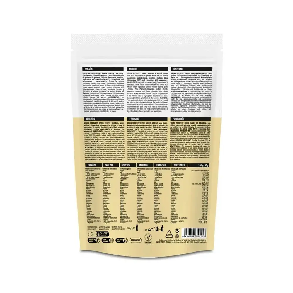 Klik hier voor onze adviespagina over sportvoedingSpecificaties 226ERS Vegan Recovery Drink Vanille Custard 1kg