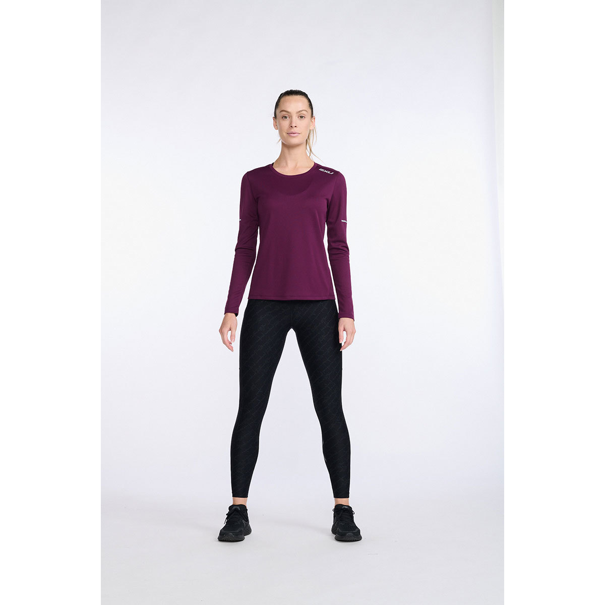 2XU Aero Hardloopshirt Lange Mouwen Donkerrood Dames