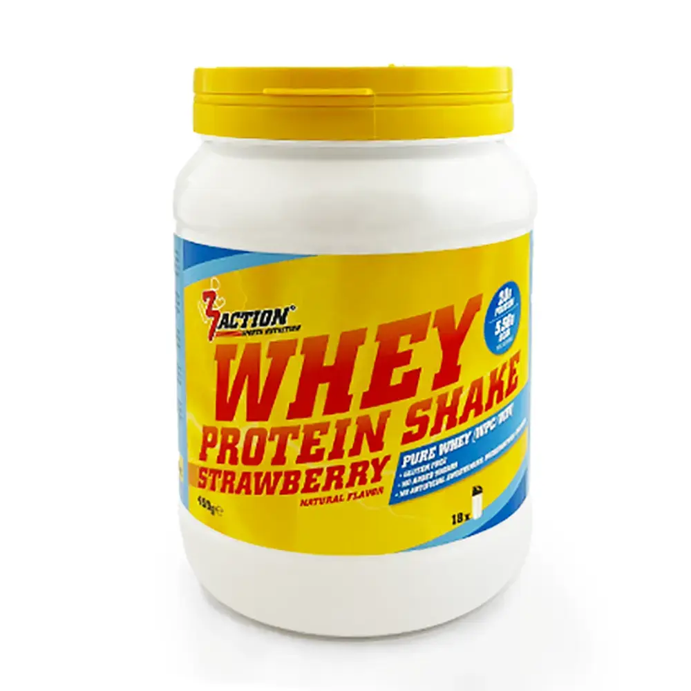 Deze 3ActionWhey Protein Shake Aardbei 900 gram zorgt ervoor dat je van iedere training perfect kunt herstellen. Dankzij het perfecte eiwit gehalte van 20g en de 5,5 gram BCAA’s ondersteunt deze shake de opbouw van de spieren, waardoor je alles uit iedere training kunt halen. De whey eiwitten zijn zeer hoogwaardig en bevatten alle essentiële aminozuren, waaronder een hoge dosis glutamine. Welke zeer veel invloed heeft op de groei van je spieren heeft. Deze shake kun je het beste in het eerste half uur na de inspanning te gebruiken, omdat het lichaam dan het meest ontvankelijk is voor voedingsstoffen waardoor je spieren het meest optimaal zullen herstellen. Deze shake is zowel aspartaam als glutenvrij en heeft een natuurlijk aroma.