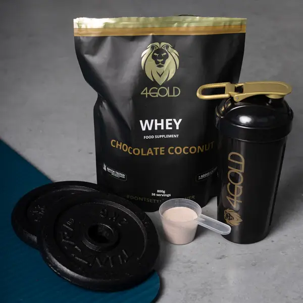 De 4GOLD Whey Hersteldrank Chocolade/Kokos is de ideale keuze om je spieren te herstellen na een intensieve training. Deze hoogwaardige whey-eiwit levert 26 gram eiwit per portie, inclusief 7,6 gram BCAA's en 5,2 gram leucine, wat essentieel is voor optimale spiergroei en herstel. Whey is een compleet eiwit dat alle essentiële aminozuren bevat en helpt bij het behoud en de groei van spiermassa. De toevoeging van lactase maakt het ook geschikt voor mensen met lactose-intolerantie. Met de heerlijke smaak van chocolade en kokos biedt deze hersteldrank niet alleen de nodige voedingsstoffen, maar ook een smaakvolle ervaring.