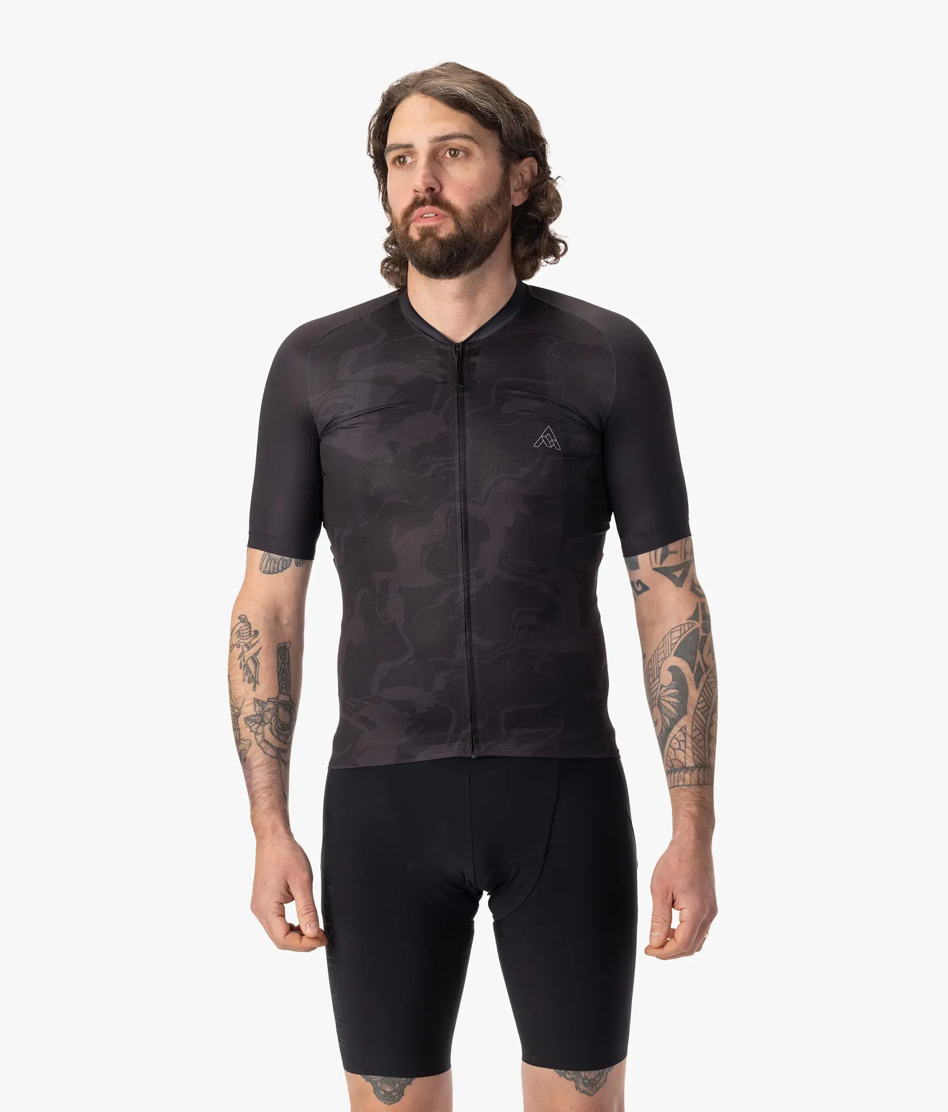Het 7mesh Pace fietsshirt met korte mouwen is licht, snel en zeer ademend wielershirt voor op de weg. Het shirt is ontworpen om de hitte te verslaan en in recordtijd de top te bereiken. Het Pace shirt is gericht op prestatie, wat je meteen voelt bij het aantrekken. De aerodynamische vorm voelt vanaf het begin snel aan. De ultralichte stof is aan de voorkant en onder de arm versterkt met mesh-zones om de luchtstroom bij hoge snelheden te bevorderen. Aan de achterkant zorgt een vereenvoudigd 'Anything' zakjessysteem van mesh voor een slank profiel terwijl het ruimte biedt voor essentiële snacks en benodigdheden. Een gemakkelijk toegankelijk zakje met rits aan de zijkant van het hoofdopbergvak houdt je waardevolle spullen veilig totdat je ze nodig hebt. Passend bij de gestroomlijnde esthetiek van het shirt, heeft Pace een lage kraag in racestijl. De rits beschikt over een kinbeschermer om schuren te voorkomen.