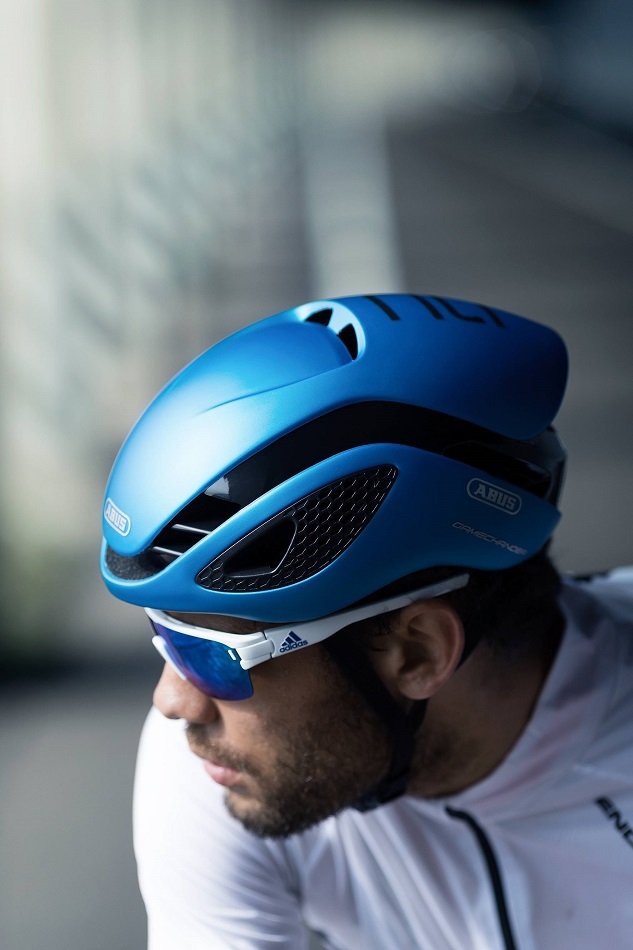 Als je voor de Abus Gamechanger kiest, dan kies je voor de helm die ook Mathieu van der Poel draagt! Deze Abus Gamechanger is ook echt een Gamechanger! De helm is licht van gewicht en biedt via de In Mold schaal een uitstekende stootdemping. Hierdoor kan je met een gerust hart de weg op, omdat je weet dat jouw hoofd hoe dan ook goed beschermd is. Dankzij het nauwkeurige Zoom Ace verstelsysteem kan je de pasvorm erg gemakkelijk aanpassen, zodat de helm altijd goed op je hoofd aansluit. Vooral tijdens de zomermaanden zal je de heerlijke verkoeling merken die wordt veroorzaakt door de strategisch geplaatste ventilatiekanalen. Uiteraard is deze helm ontworpen in de windtunnel, de toprenners hechten natuurlijk veel waarde aan een zo laag mogelijke luchtweerstand. Op aerodynamisch vlak komt deze Abus Gamechanger dan ook uitstekend uit de bus. De unieke configuratie van de ventilatiekanalen en de lijnen die de lucht over snel over de helm geleiden zorgen ervoor dat deze helm echt door de lucht snijd. Ideaal voor wielrenners die op zoek zijn naar snelheid. Deze helm is te dragen in combinatie met een paardenstaart en is voorzien van een aerodynamische brilhouder met beugel. Deze beugel houdt niet alleen je bril vast, maar biedt ook nog eens een aerodynamisch voordeel.