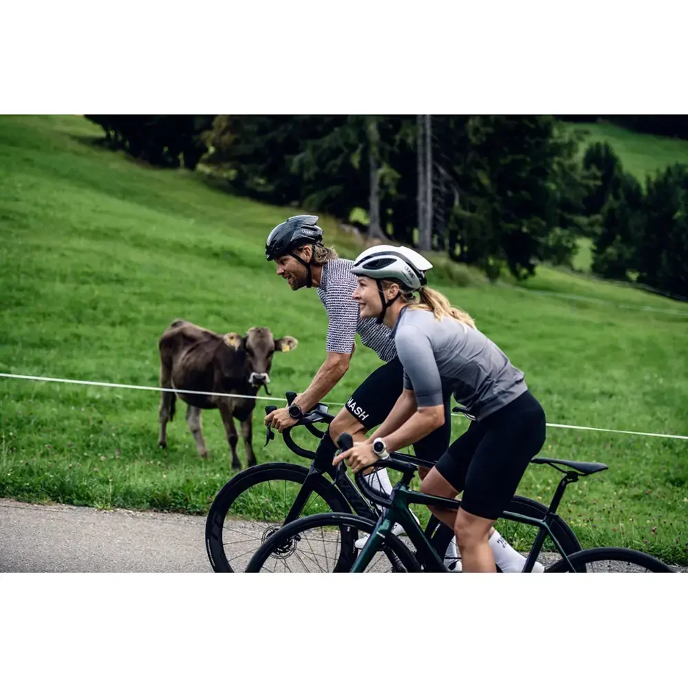 Als je voor de Abus Gamechanger kiest, dan kies je voor de helm die ook Mathieu van der Poel draagt! Deze Abus Gamechanger is ook echt een Gamechanger! De helm is licht van gewicht en biedt via de In Mold schaal een uitstekende stootdemping. Hierdoor kan je met een gerust hart de weg op, omdat je weet dat jouw hoofd hoe dan ook goed beschermd is. Dankzij het nauwkeurige Zoom Ace verstelsysteem kan je de pasvorm erg gemakkelijk aanpassen, zodat de helm altijd goed op je hoofd aansluit. Vooral tijdens de zomermaanden zal je de heerlijke verkoeling merken die wordt veroorzaakt door de strategisch geplaatste ventilatiekanalen. Uiteraard is deze helm ontworpen in de windtunnel, de toprenners hechten natuurlijk veel waarde aan een zo laag mogelijke luchtweerstand. Op aerodynamisch vlak komt deze Abus Gamechanger dan ook uitstekend uit de bus. De unieke configuratie van de ventilatiekanalen en de lijnen die de lucht over snel over de helm geleiden zorgen ervoor dat deze helm echt door de lucht snijd. Ideaal voor wielrenners die op zoek zijn naar snelheid. Deze helm is te dragen in combinatie met een paardenstaart en is voorzien van een aerodynamische brilhouder met beugel. Deze beugel houdt niet alleen je bril vast, maar biedt ook nog eens een aerodynamisch voordeel.