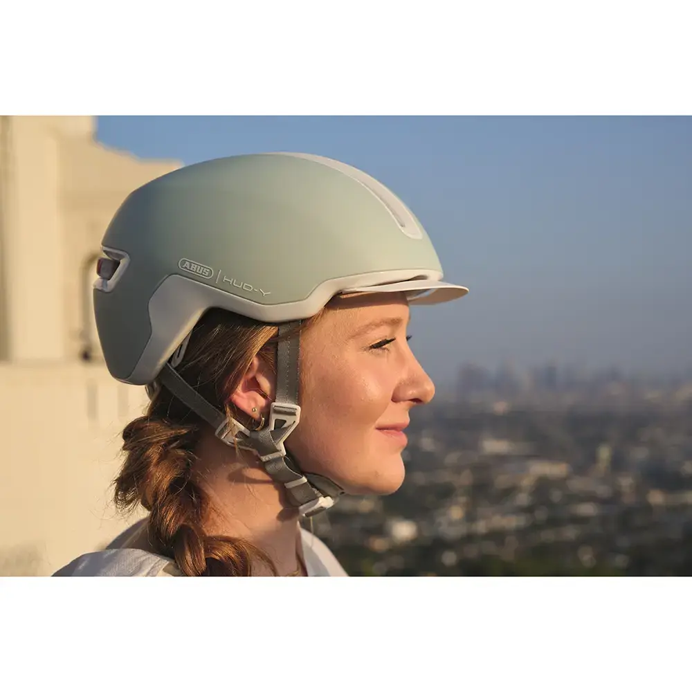 De ABUS HUD-Y Pure Fietshelm is de nieuwste telg in de urban categorie van Abus. De helm is uitgerust met allerlei praktische functies voor in de stad en is daarmee ideaal voor bijvoorbeeld woon-/werkverkeer. De helm is rondom voorzien van reflecterende elementen en zelfs van een magnetisch achterlicht. Zo ben je altijd en overal goed zichtbaar voor mede weggebruikers. Het achterlicht is USB oplaadbaar en middels de magneet gemakkelijk afneembaar. Ook heeft het licht 4 standen, waardoor je altijd optimaal zichtbaar bent. Met het Zoom-Ace Urban verstelsysteem kun je de helm nauwkeurig verstellen voor jouw specifieke hoofdomtrek. Dit systeem is ook in hoogte verstelbaar en erg geschikt voor het gebruik met een paardenstaart. De Multi Shell In-Mold techniek verbind de verschillende harde buitenschalen aan de EPS binnenschaal op lichte en veilige manier. Het opklapbare vizier maakt de helm perfect om te rijden in weer en wind.