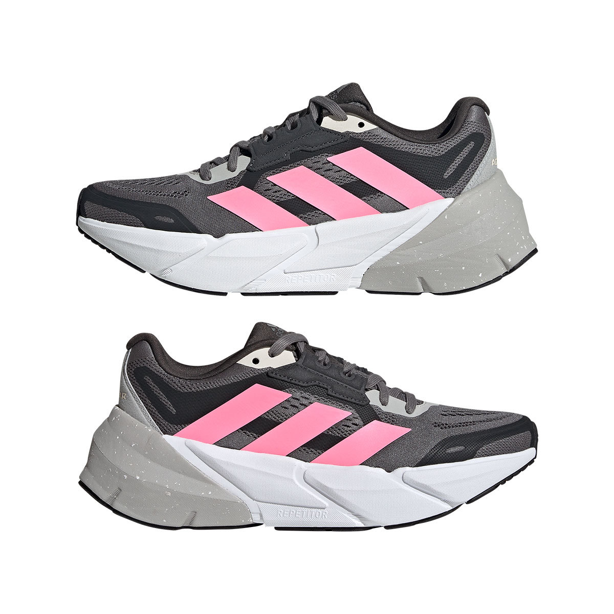 De Adistar 1 van adidas is ontwikkeld om je mee te nemen op je langste runs met maximaal comfort en innovatieve demping. De demping wordt gegeven door het REPETITOR foam met dubbele dichtheid, die de tussenzool onder de hiel is geplaatst. Deze technologie beschermt je hiel en ondersteunt je voet bij de afwikkeling. In combinatie met de 6mm drop en Rocker-geometrie in de voorvoet wordt je effectief ondersteund in de voorwaartse beweging. De onderkant van de schoen is gemaakt van Continental rubber, een bewezen rubbermerk die je gegarandeerd goede tractie en grip biedt. De bovenzijde is gemaakt van zacht en ademend mesh dat in combinatie met de verstevigde tong rond je voet sluit. Een aangename zachte instap is het gevolg. Je voet zit stevig en vertrouwd in de schoen, mede door de versteviging van de bovenzijde waar de veters doorheen lopen.