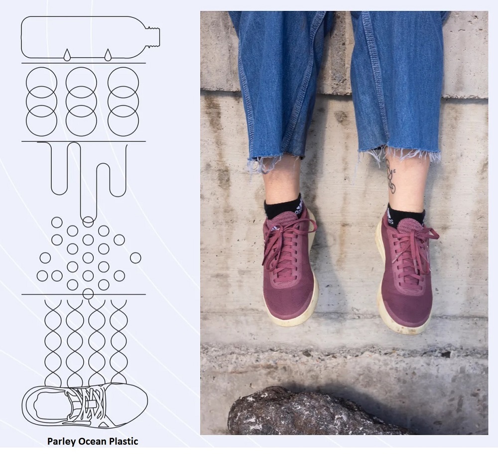 - Garen in bovenwerk: minstens 50% uit Parley Ocean Plastic en 50% uit gerecycled polyester