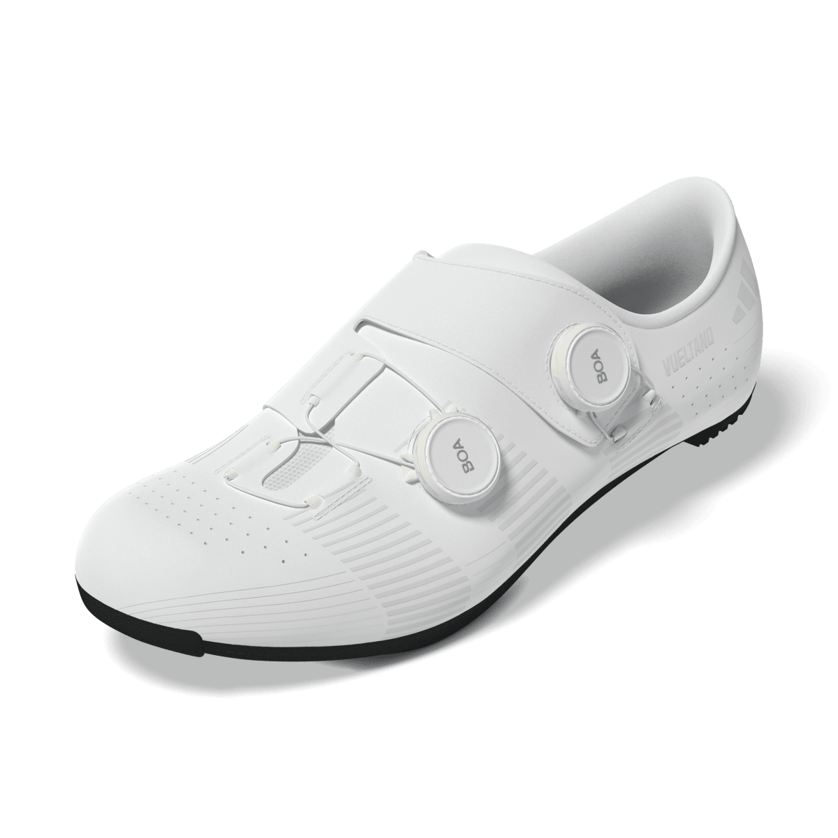 Als het op fietsen aankomt, is veelzijdigheid van het grootste belang. De Vueltano Carbon schoenen zijn ontworpen als jouw perfecte allrounder, ideaal voor zowel het dagelijkse woon-werkverkeer als voor lange ritten in het weekend. Dankzij een flexibelere zool loop je er gemakkelijker op dan met traditionele fietsschoenen, wat de momenten naast de fiets aanzienlijk comfortabeler maakt. Met het BOA® Fit System pas je de schoen snel en eenvoudig aan voor een perfecte, op maat gemaakte pasvorm. Perforaties in het bovenwerk verbeteren de luchtstroom om je voeten koel en droog te houden. De spuitgegoten loopzool combineert koolstof- en glasvezel voor een lichte maar toch stevige constructie, terwijl uitsparingen in de plaat extra ventilatie bieden. Deze adidas fietsschoenen zijn met oog voor detail gemaakt en bieden een premium optie voor al je wieleravonturen, of je nu meedoet aan een wedstrijd of geniet van een ontspannen tocht.
