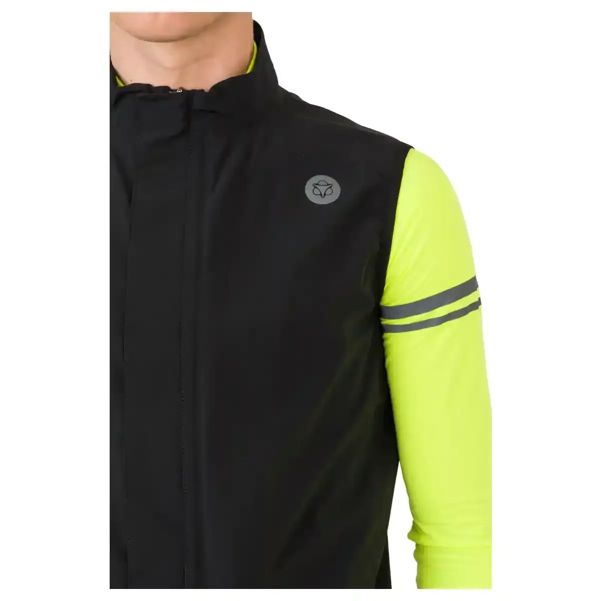 Het AGU Body Essential Prime Regenvest is volledig wind- en waterdicht en heeft toch een hoog ademend vermogen. De stof heeft een ‘poray’ van 15.000, wat betekent dat water er niet doorheen zal dringen. De naden zijn getapet en de rits is waterdicht. Dit alles zorgt ervoor dat je lijf droog blijft. Via de armgaten kan natuurlijk nog wel water naar binnen dringen. De stof is goed rekbaar door het 4-way stretch materiaal. Daardoor sluit het vest ook goed aan en gaat deze niet flapperen in de wind. Een siliconen gripper onderin het vest houdt hem goed op zijn plek. Het hele vest is voorzien van reflecterende elementen, je bent goed zichtbaar in het donker dus.