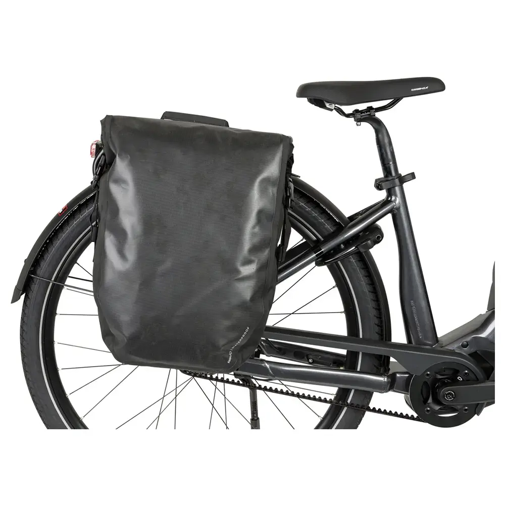 De Agu Clean Single Shelter Click'nGo Large 21L Achtertas zet een nieuwe standaard voor waterdichte fietstassen. Dit robuuste, no-nonsense ontwerp zorgt ervoor dat je spullen veilig van de ene naar de andere kant van de stad komen, elke dag van de week. Het betrouwbare roll-top sluitingssysteem, gecombineerd met gelaste naden, zorgt ervoor dat je bagage veilig is, zelfs bij slecht weer. Het Large model beschikt over een gewatteerd laptopvak, en de afneembare schouderriem maakt het eenvoudig om de tas van de fiets af te dragen wanneer je je bestemming hebt bereikt.