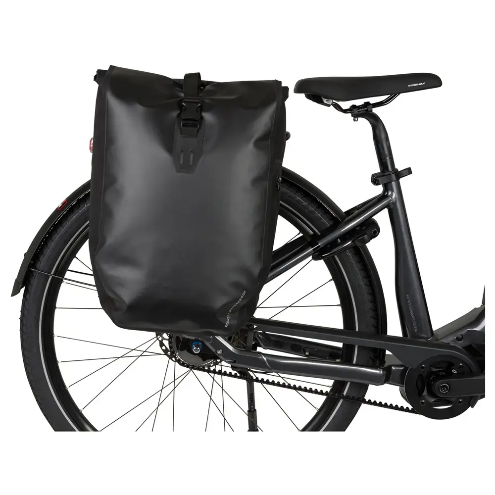 De Agu Clean Single Shelter Click'nGo Large 21L Achtertas zet een nieuwe standaard voor waterdichte fietstassen. Dit robuuste, no-nonsense ontwerp zorgt ervoor dat je spullen veilig van de ene naar de andere kant van de stad komen, elke dag van de week. Het betrouwbare roll-top sluitingssysteem, gecombineerd met gelaste naden, zorgt ervoor dat je bagage veilig is, zelfs bij slecht weer. Het Large model beschikt over een gewatteerd laptopvak, en de afneembare schouderriem maakt het eenvoudig om de tas van de fiets af te dragen wanneer je je bestemming hebt bereikt.