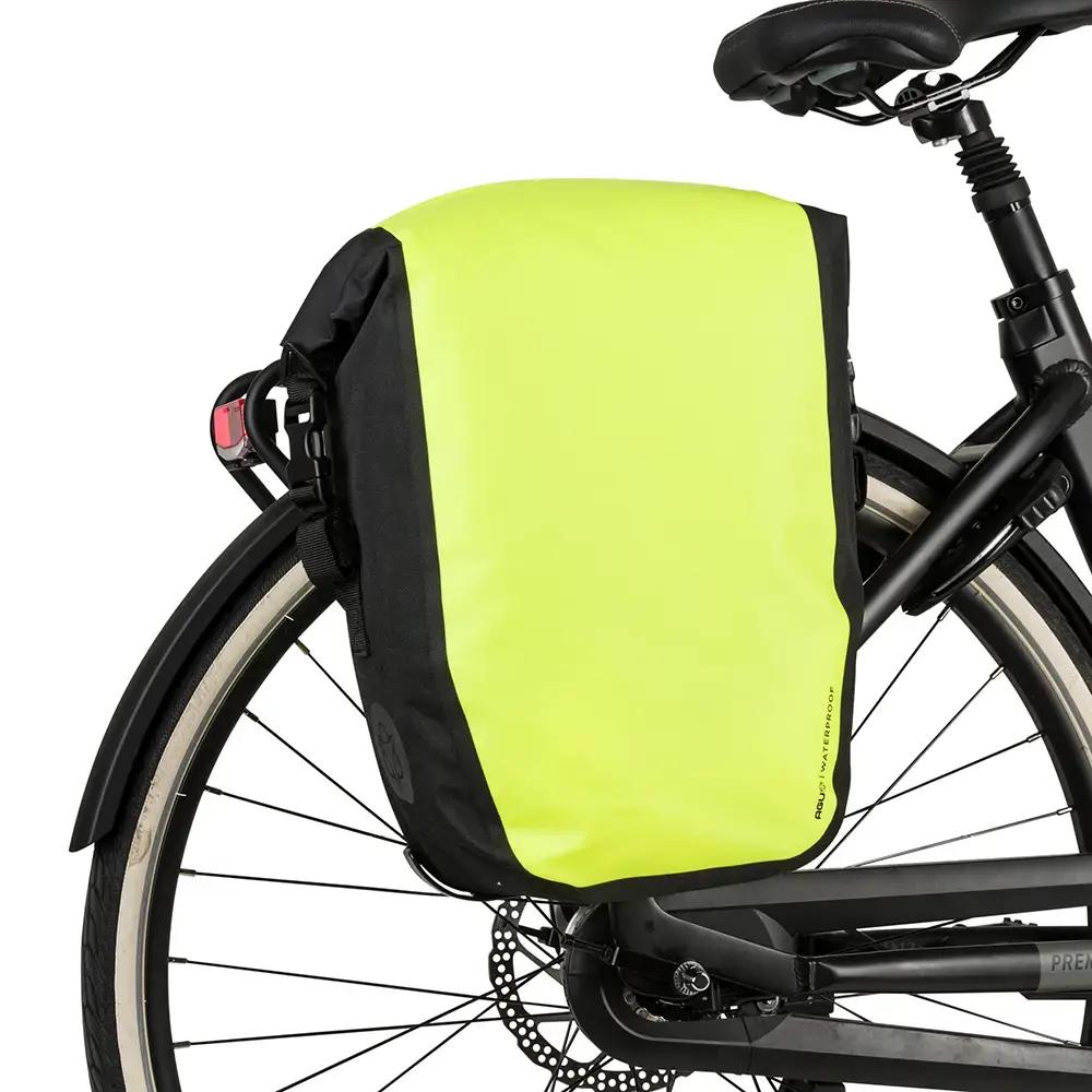 De Agu Clean Single Shelter Click'nGo Medium 17L Fietstas is de ultieme waterdichte achtertas voor fietsers die prestatie en stijl eisen. Met zijn roll-top sluiting en gelaste naden blijft je bagage droog en veilig, zelfs bij slecht weer. De 17L capaciteit wordt aangevuld met een zippbaar binnencompartiment om je spullen georganiseerd op te bergen. De afneembare schouderriem maakt het gemakkelijk om de tas van de fiets af te dragen.