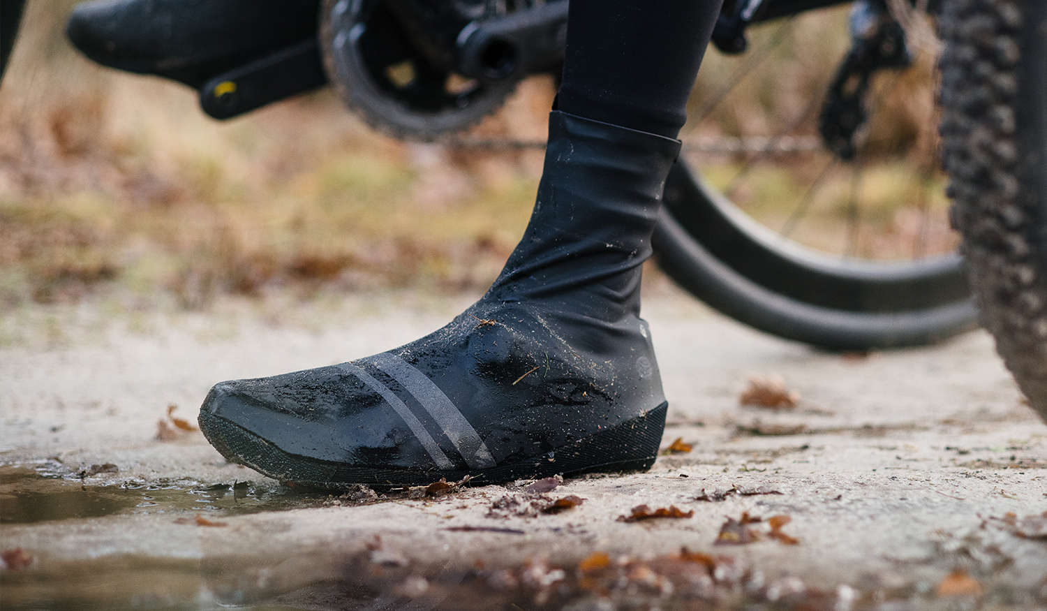 De overschoenen zijn voorzien van reflecterende details voor betere zichtbaarheid in donkere omstandigheden