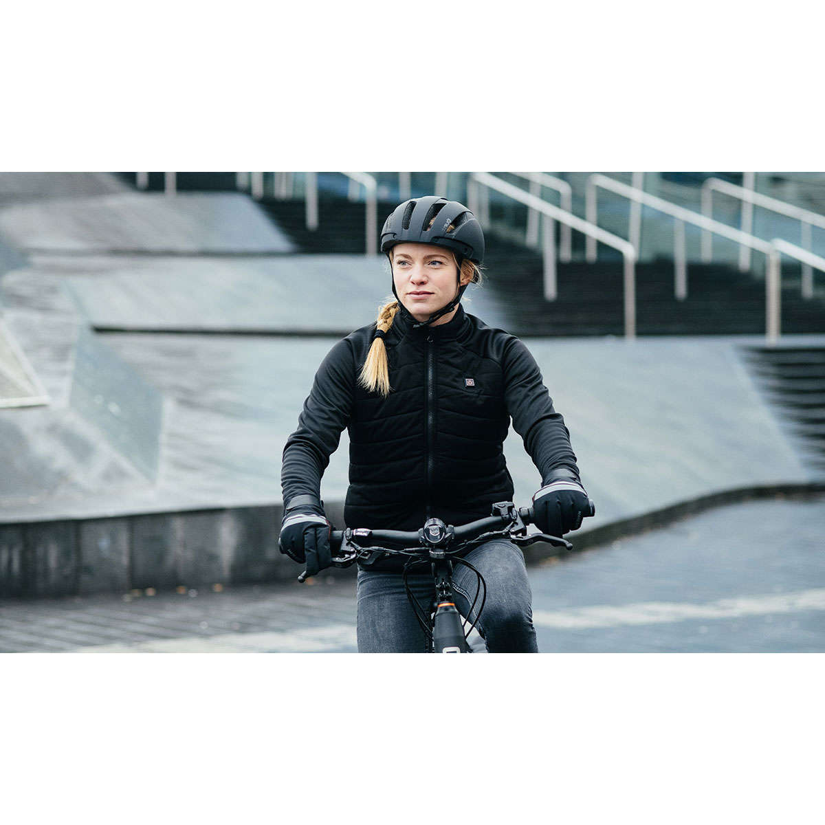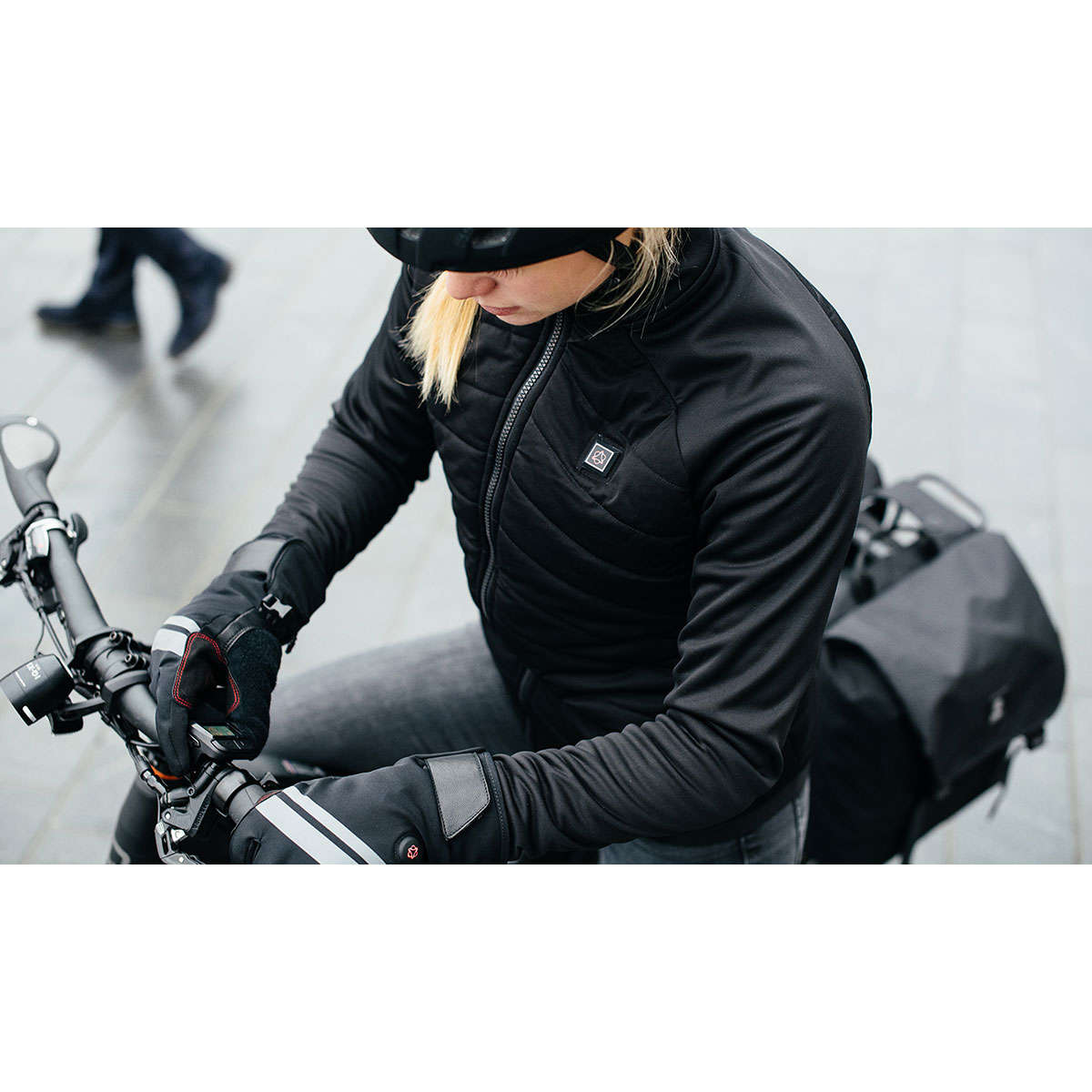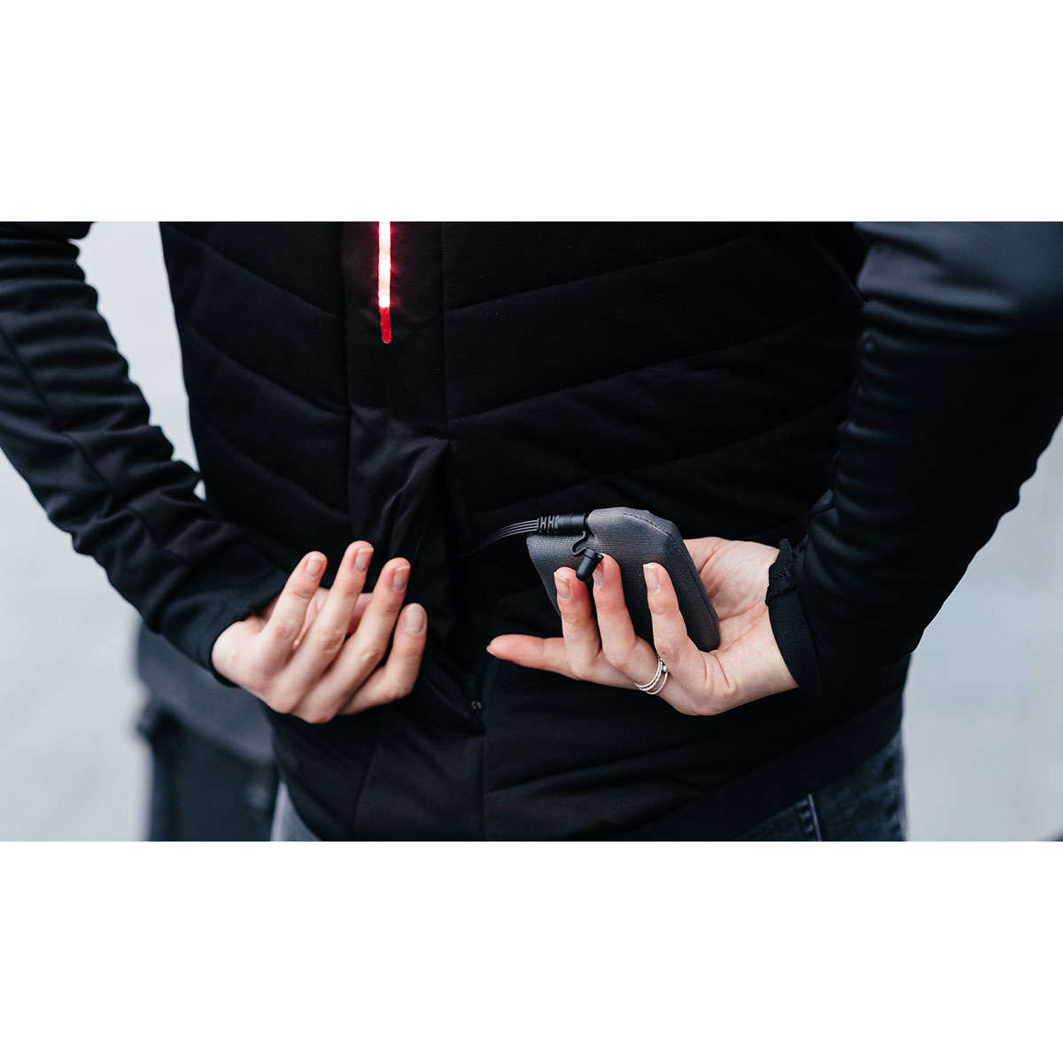 Het AGU Heated Essential LED Fietsjack is voorzien van warmtepanelen een een accu die oplaadbaar is! Daardoor kun je in extreme kou gewoon door blijven fietsen. Daarnaast is het jack ideaal als je staat te wachten op je fietsvrienden of een lekke band vervangt. Het jack houdt je op die momenten warm. De accu gaat op de laagste van drie standen tot 6 uur mee. Op de achterzijde is bovendien een Led strip aangebracht, waardoor je goed zichtbaar bent voor anderen. Het gebruikte materiaal van het jack is verder winddicht en wateraftotend. Opspattend water of lichte regen komt niet naar binnen dus. Op de achterzijde zijn 2 insteekzakken aangebracht en een extra zakje met ritssluiting