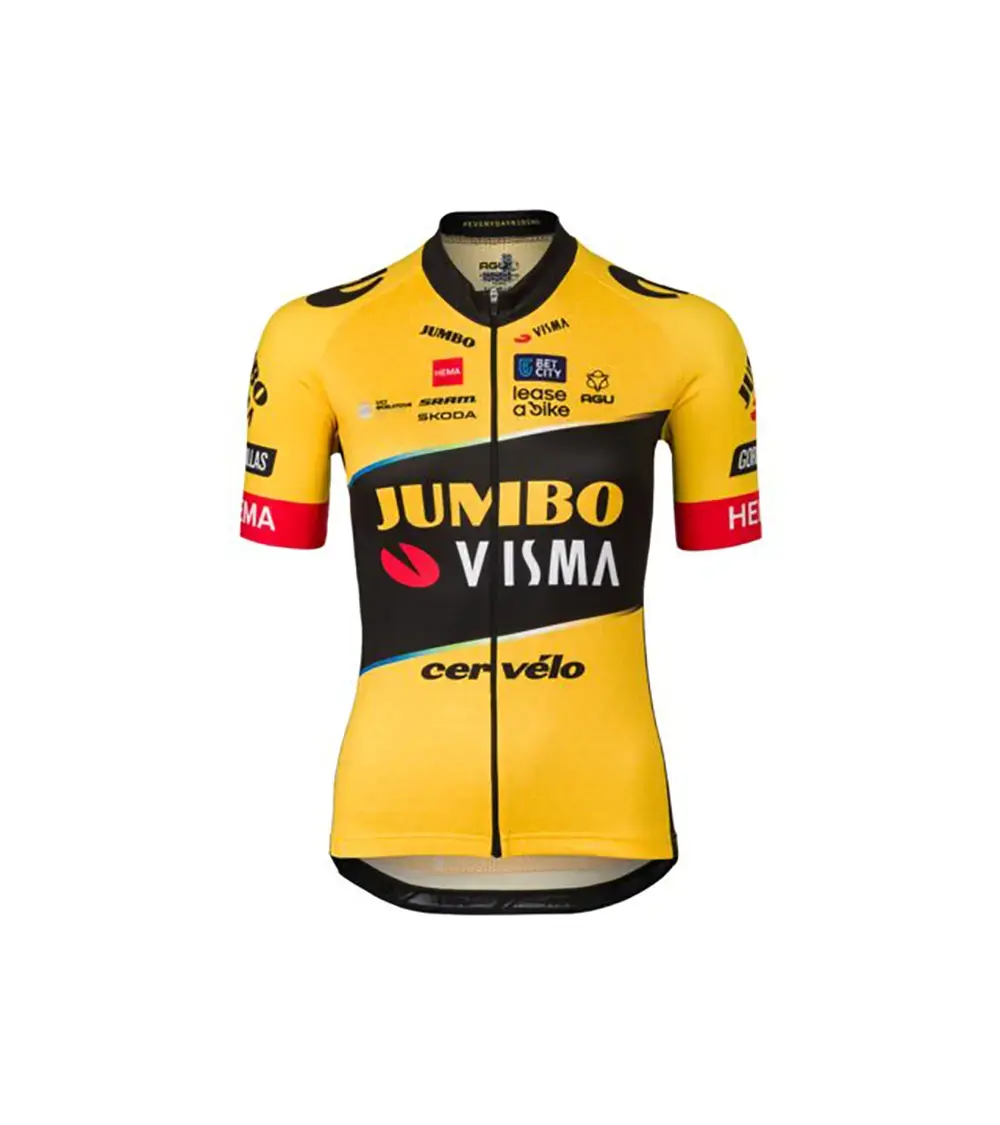Stel je vraag over de AGU Jumbo-Visma Replica Fietsshirt Korte Mouwen Geel/Zwart Dames.
