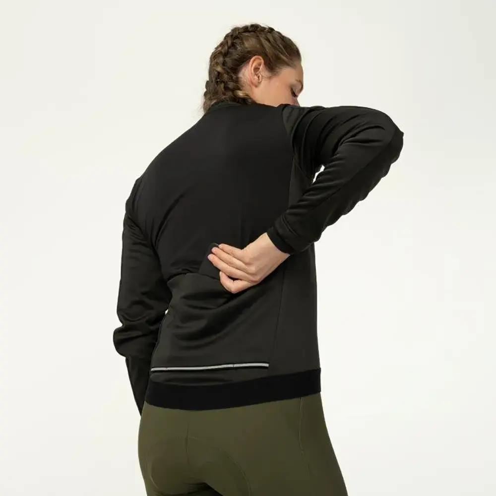 Dit AGU Performance Winter Fietsjack is perfect voor ritten in de winter. Het jack is heerlijk warm dankzij de gebruikte materialen. De stof is winddicht en waterafstotend, waardoor je ook in gure omstandigheden gewoon door kunt blijven fietsen. Om niet oververhit te raken zijn er ademende panelen aangebracht, vooral op de achterzijde. Daardoor kan overtollige warmte en zweet ontsnappen. Ook ritten op hoge intensiteit kun je gewoon met dit jack doen dus. Op de achterzijde zijn drie insteekzakken aangebracht. Er is de mogelijkheid om een kabeltje door het jack heen te laten lopen vanaf de zakken. Zo kun je bijvoorbeeld met een koptelefoon fietsen. De reflecterende elementen zorgen voor betere zichtbaarheid in het verkeer. Deze fietsjack valt onder het Green Sphere-label van Agu: het is gemaakt van Greensphere Recycled Polyester