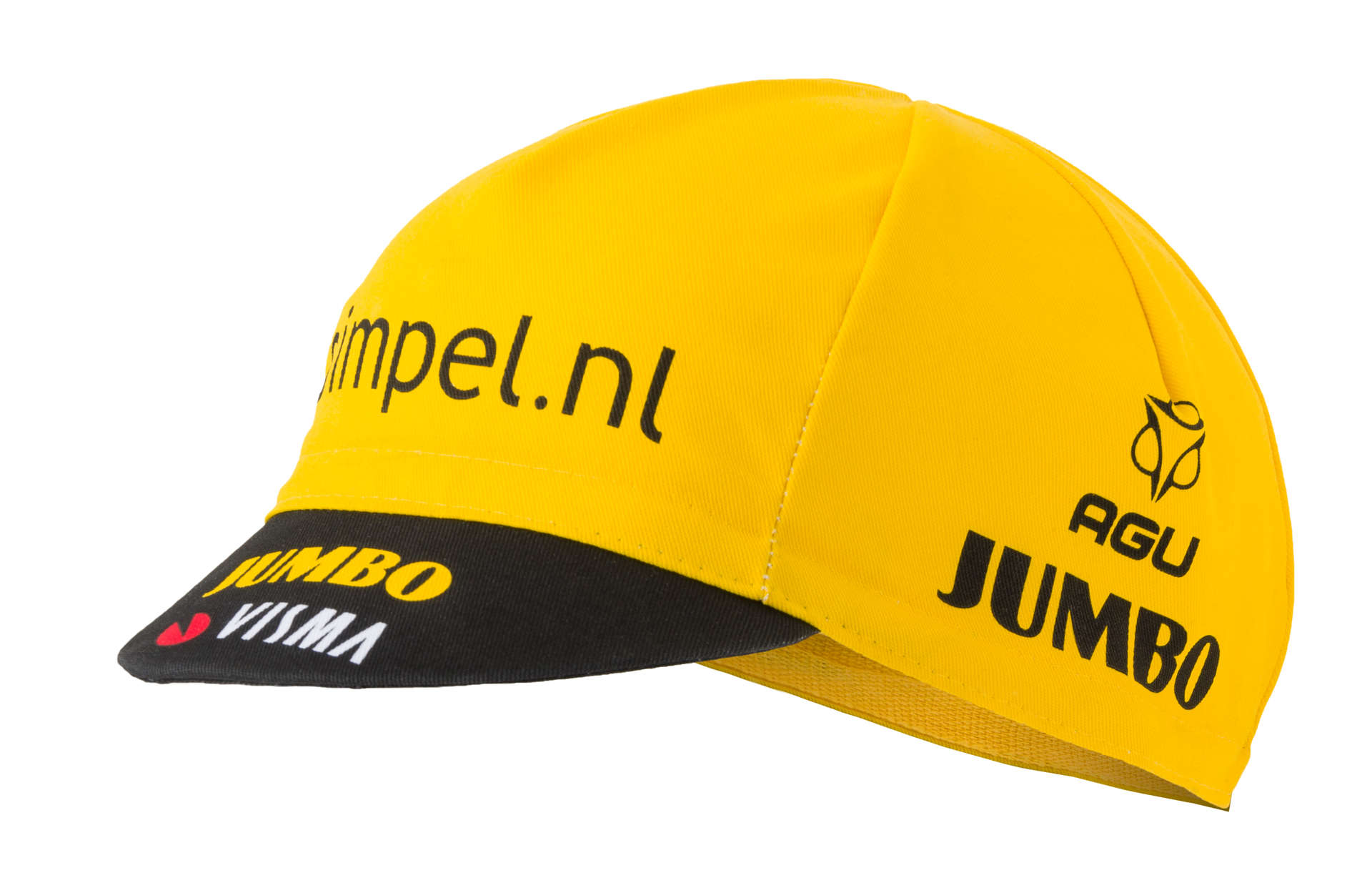 De AGU Team Jumbo-Visma Koerspet is de officiële koerspet van Team Jumbo-Visma. Deze klassieke koerspet houdt zon en zweet uit je ogen! Hij zit lekker dankzij de 100% katoen. Maak je Jumbo-Visma outfit compleet met deze pet!