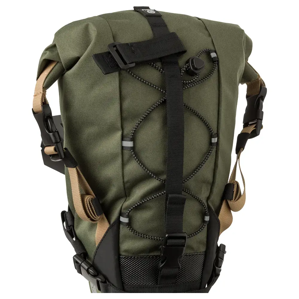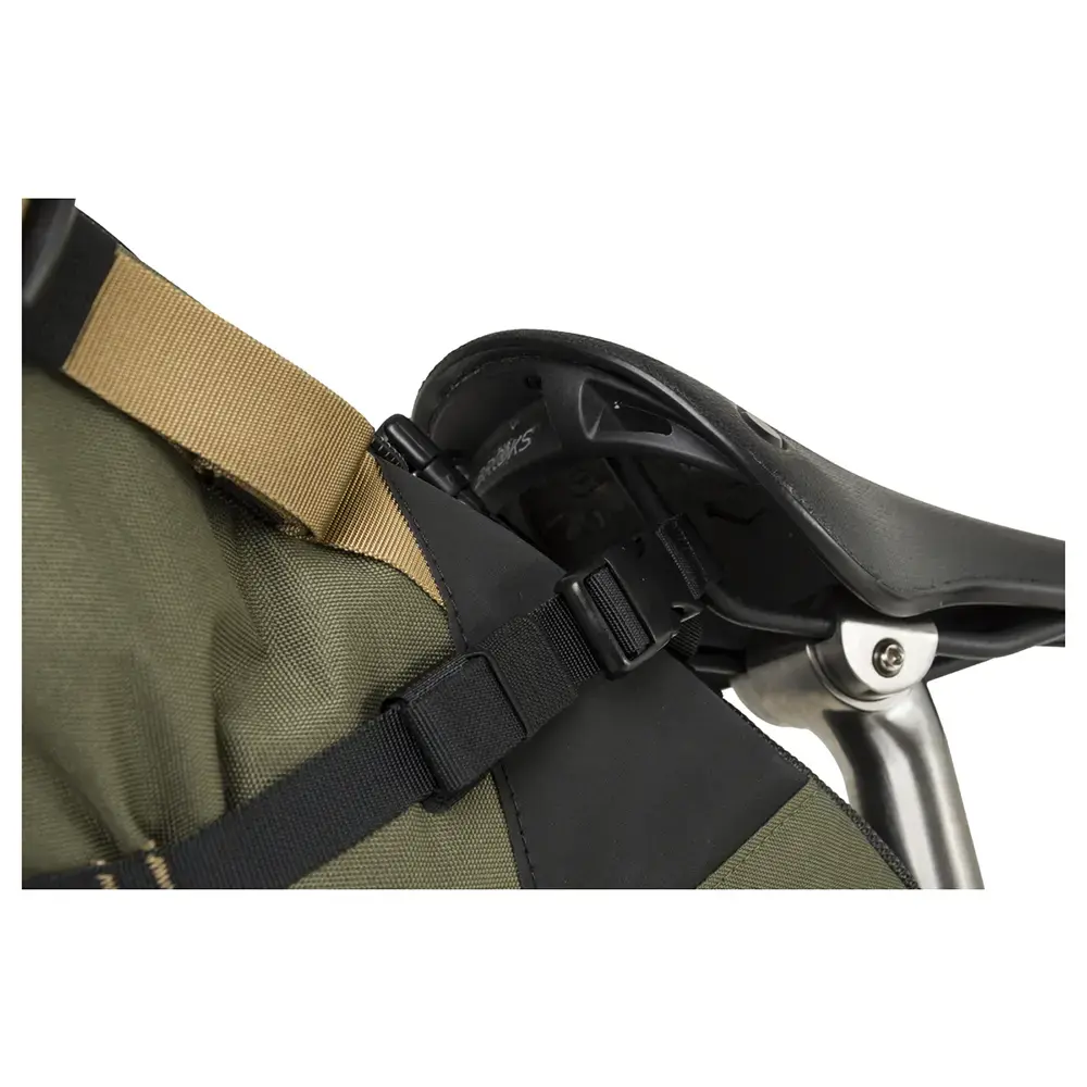 Al redelijk wat (mini) bikepacking trips van 2 of 3 dagen met deze zadeltas gemaakt. De tas is erg degelijk, makkelijk te bevestigen en zit stevig. Echt ideaal is de waterdichte drybag aan de binnenkant, zodat je ook makkelijk je bagage er kan uittrekken op je bestemming. Hij is goed waterdicht (flink wat buien gehad), maar weet niet bij langdurig extreem weer. 10L is voor mij prima, icm andere tassen.