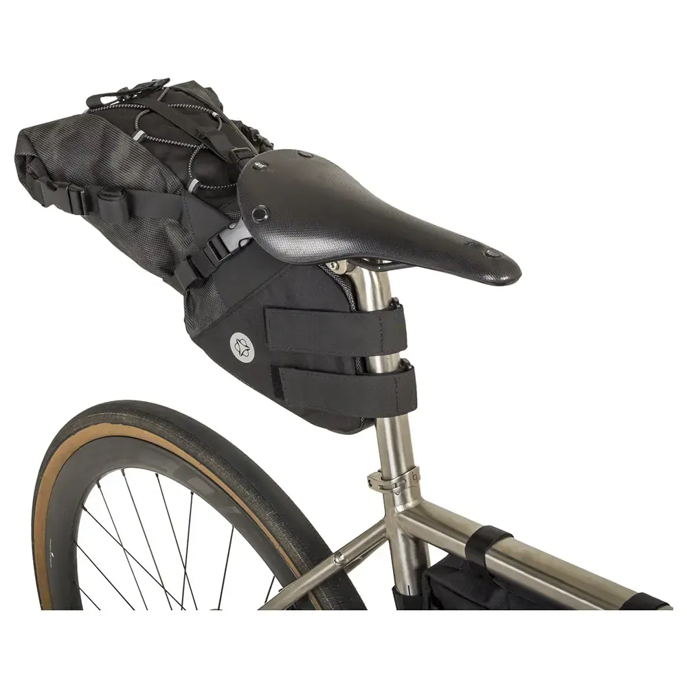 Al redelijk wat (mini) bikepacking trips van 2 of 3 dagen met deze zadeltas gemaakt. De tas is erg degelijk, makkelijk te bevestigen en zit stevig. Echt ideaal is de waterdichte drybag aan de binnenkant, zodat je ook makkelijk je bagage er kan uittrekken op je bestemming. Hij is goed waterdicht (flink wat buien gehad), maar weet niet bij langdurig extreem weer. 10L is voor mij prima, icm andere tassen.