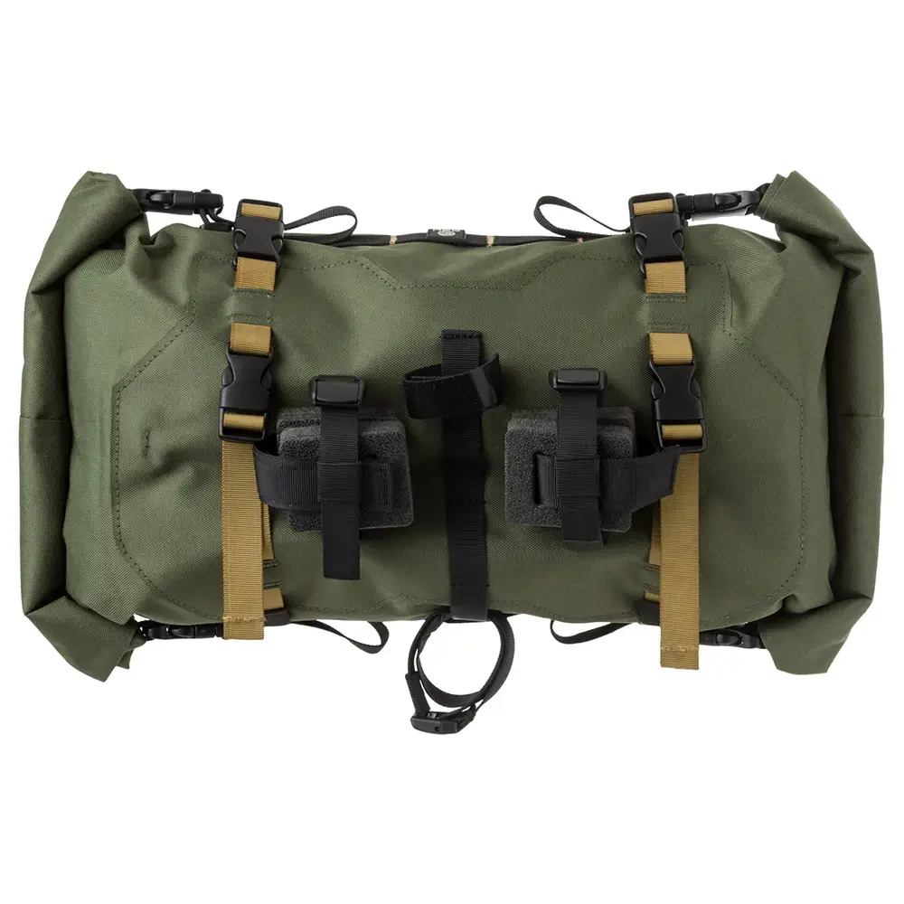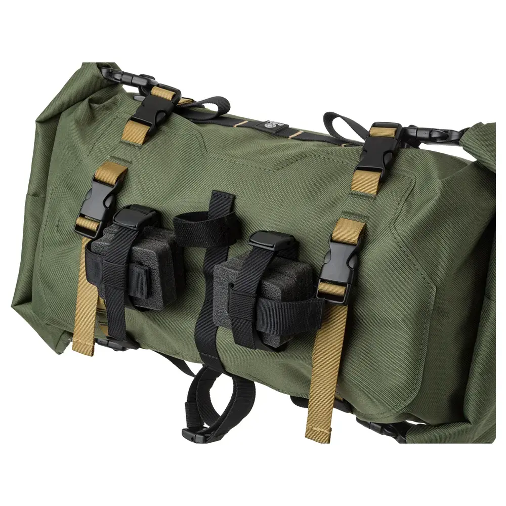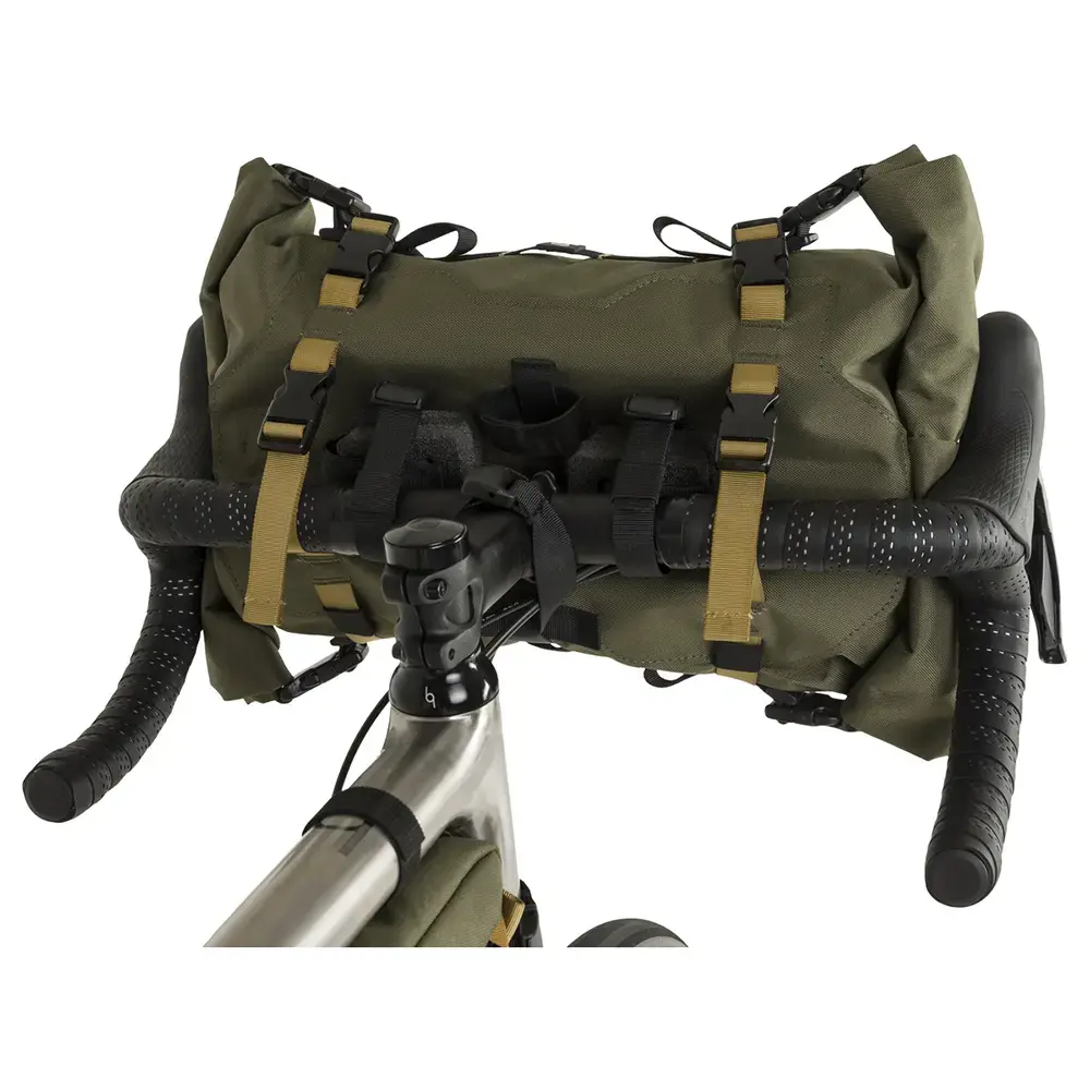 De AGU Venture 17L Stuurtas is ideaal wanneer je gaat bikepacken. De tas bevestig je snel en stevig op het stuur van je fiets om je benodigde spullen binnen handbereik te hebben. De tas zet je vast op de fiets met klittenband straps, waardoor je de tas eenvoudig los kunt halen. De tas is voorzien van een waterdichte rolssluiting en compressiestraps. Op strategische plekken zijn extra stevige stukken Hypalon geplaatst en de afstandhouders zorgen ervoor dat er voldoende ruimte op je stuur voor de kabels en het balhoofd is. De tas is waterafstotend waardoor je spullen ook in lichte regen gewoon droog blijven. De DWR coating is PFC vrij en de tas is gemaakt met 100% gerecycled polyester.