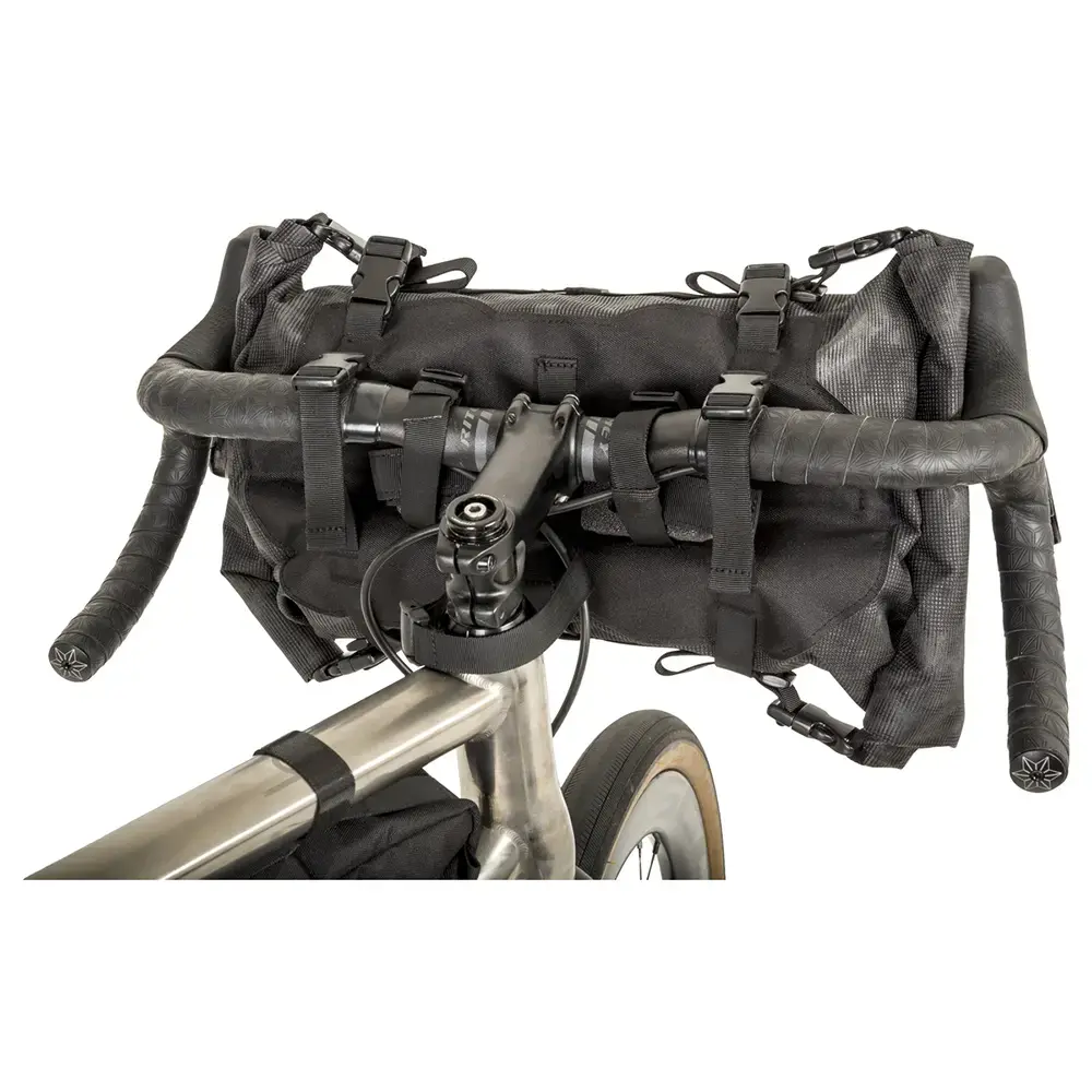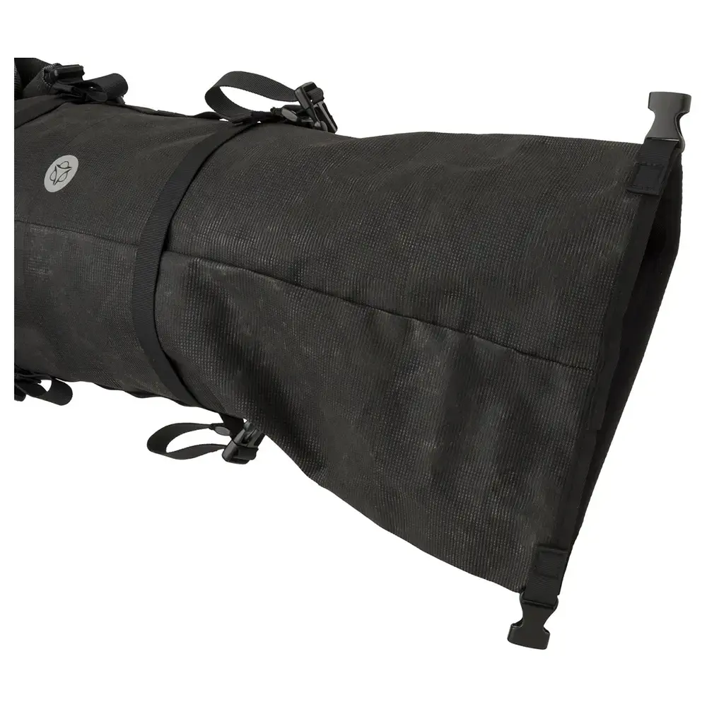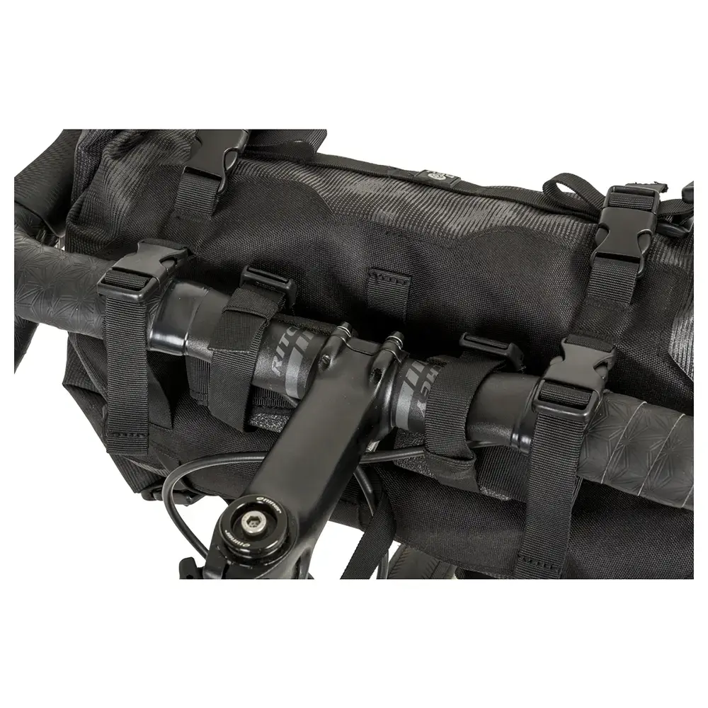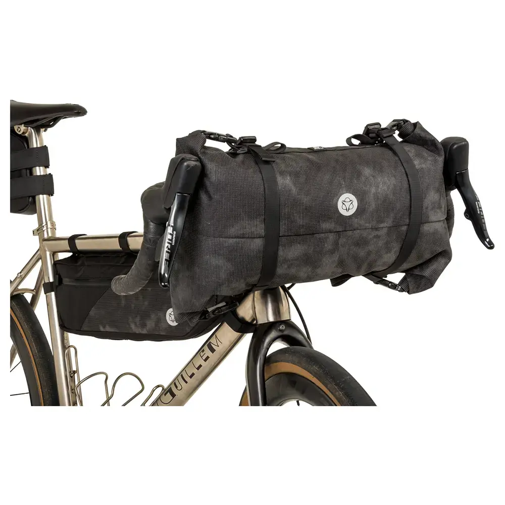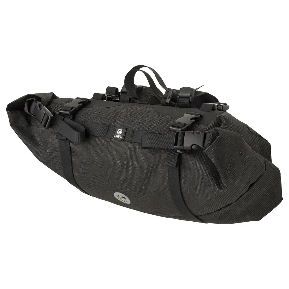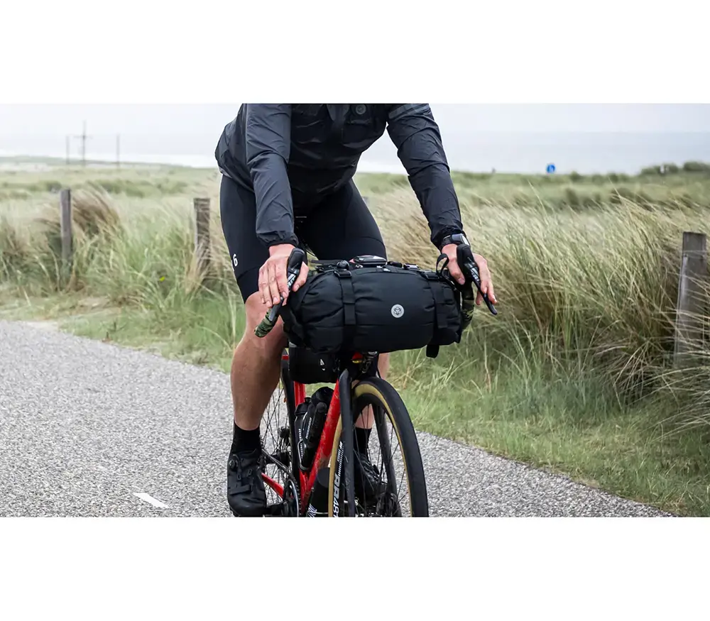 De AGU Venture 17L Stuurtas is ideaal wanneer je gaat bikepacken. De tas bevestig je snel en stevig op het stuur van je fiets om je benodigde spullen binnen handbereik te hebben. De tas zet je vast op de fiets met klittenband straps, waardoor je de tas eenvoudig los kunt halen. De tas is voorzien van een waterdichte rolssluiting en compressiestraps. Op strategische plekken zijn extra stevige stukken Hypalon geplaatst en de afstandhouders zorgen ervoor dat er voldoende ruimte op je stuur voor de kabels en het balhoofd is. De tas is waterafstotend waardoor je spullen ook in lichte regen gewoon droog blijven. De DWR coating is PFC vrij en de tas is gemaakt met 100% gerecycled polyester.