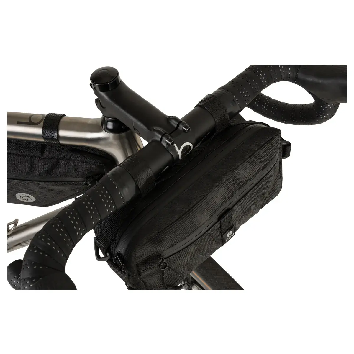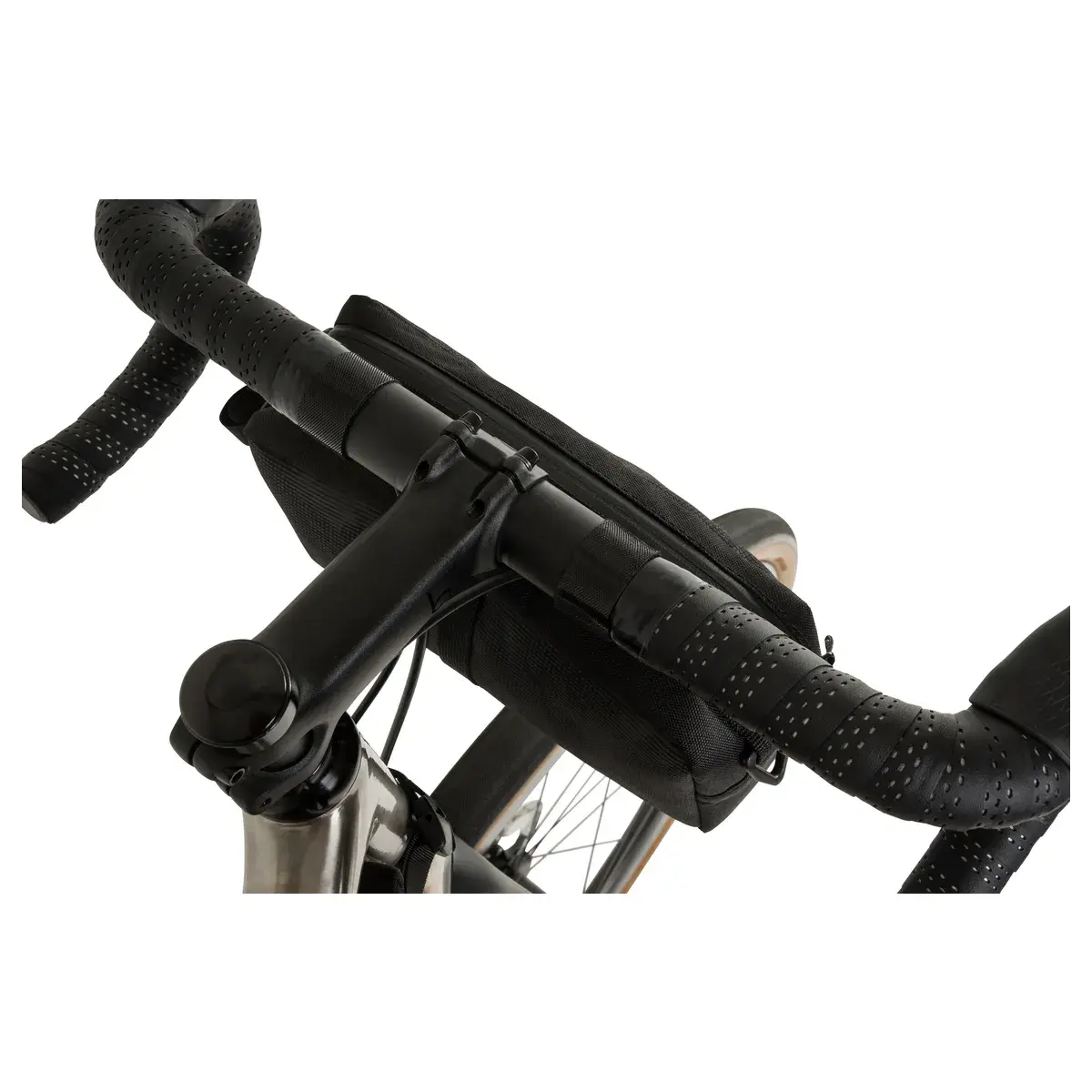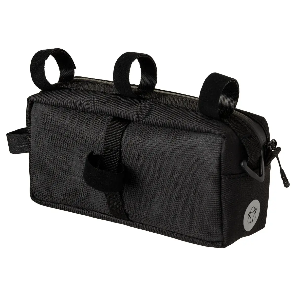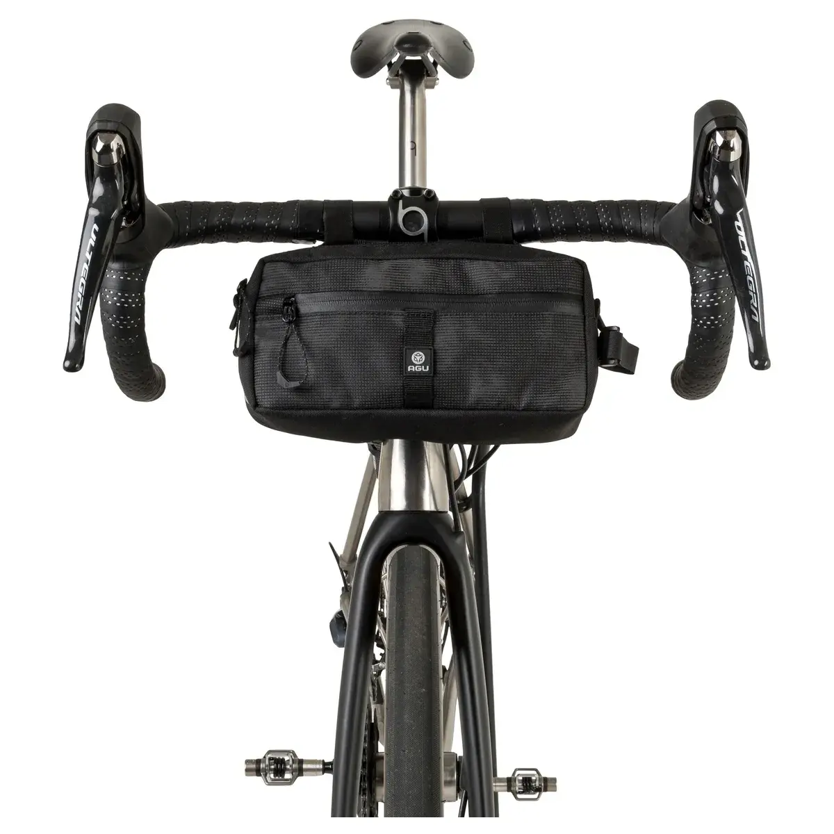 De AGU Venture 2L Stuurtas bevestig je snel en stevig op het stuur van je fiets om je benodigde spullen binnen handbereik te hebben. De tas zet je vast op de fiets met klittenband straps, waardoor je de tas eenvoudig los kunt halen. De tas bestaat uit een hoofdvak met een aantal mesh vakjes en een uitneembare vakverdeler. Aan de voorzijde is een strap aangebracht waar je een voorlamp aan kunt bevestigen. Dankzij de verwijderbare schouderband neem je de tas makkelijk mee van de fiets. De tas is waterafstotend waardoor je spullen ook in lichte regen gewoon droog blijven. De DWR coating is PFC vrij en de tas is gemaakt met gerecycled polyester.