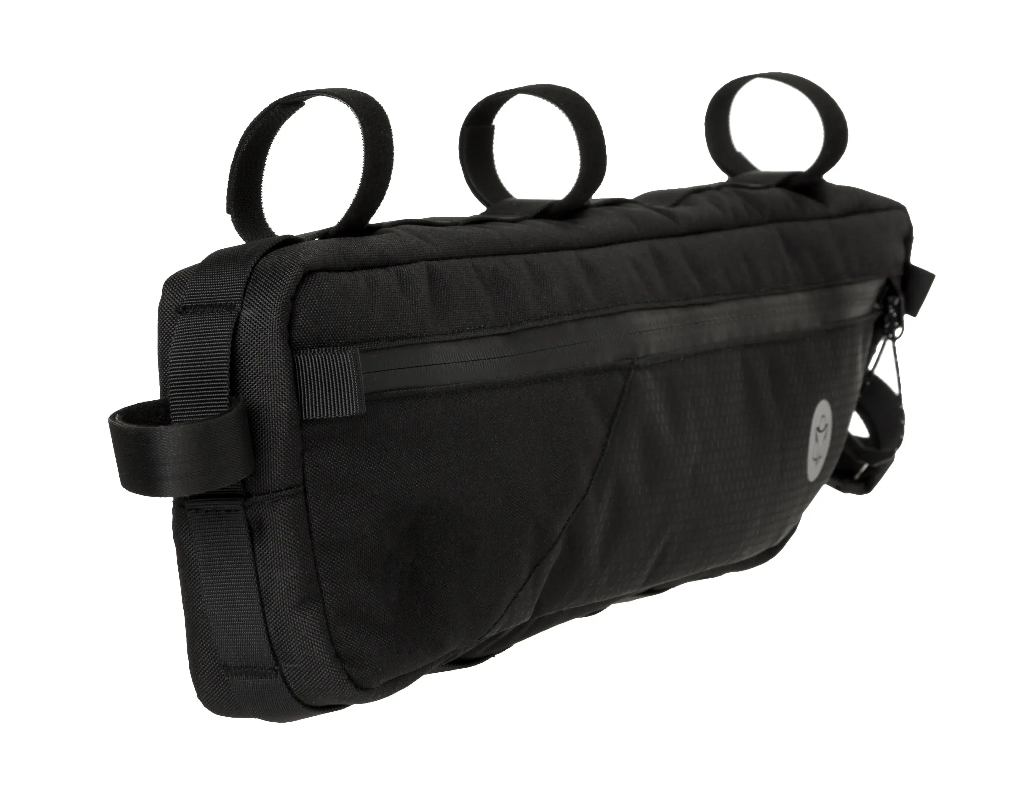 De AGU Venture 4L frametas is ideaal wanneer je gaat bikepacken in wisselvallig weer. De tas is waterafstotend, waardoor ook in een lichte regenbui je spullen gewoon droog blijven. De tas is gemaakt van 100% gerecycled polyester met een PFC-vrije DWR coating en is voorzien van een waterafstotende ritsluiting. De tas bevestig je gemakkelijk middels straps aan de onderzijde van je frame. De binnenzijde van de tas is oranje gekleurd, zodat je je spullen goed kunt zien. De 3M reflectie maakt je optimaal zichtbaar in schemerige omstandigheden.