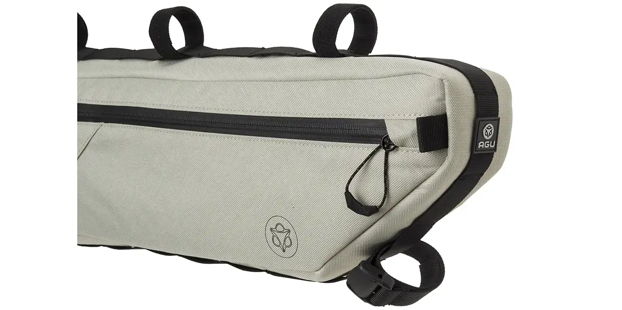 De AGU Venture 5.5L frametas is ideaal wanneer je gaat bikepacken in wisselvallig weer. De tas is waterafstotend, waardoor ook in een lichte regenbui je spullen gewoon droog blijven. De tas is gemaakt van 100% gerecycled polyester met een PFC-vrije DWR coating en is voorzien van een waterafstotende ritsluiting. De tas bevestig je gemakkelijk middels straps aan de onderzijde van je frame. De binnenzijde van de tas is oranje gekleurd, zodat je je spullen goed kunt zien. De 3M reflectie maakt je optimaal zichtbaar in schemerige omstandigheden.