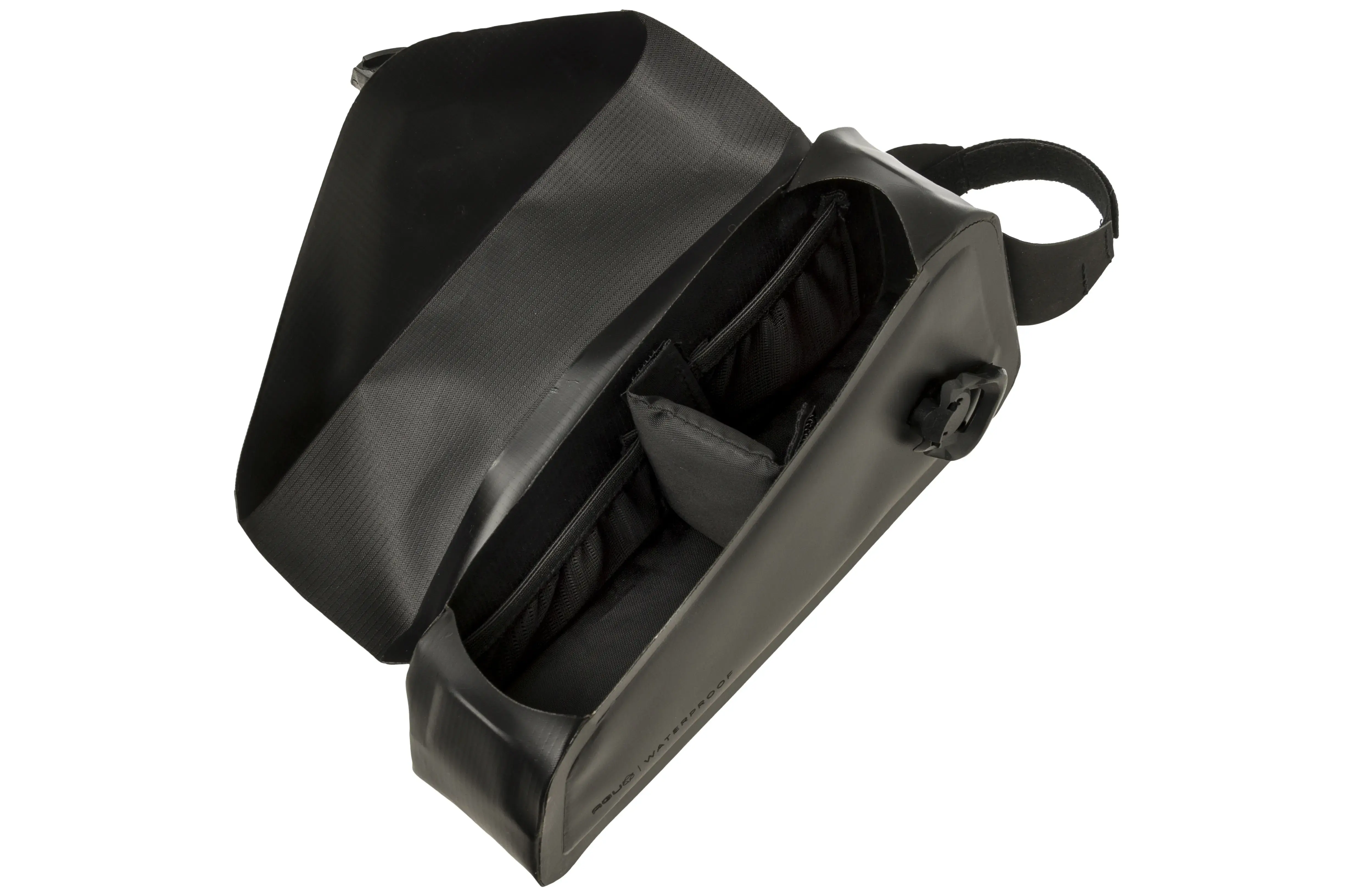 De AGU Venture Extreme Waterproof 0.7L frametas is ideaal wanneer je gaat bikepacken in wisselvallig weer. De tas is volledig waterdicht, waardoor ook in een fikse regenbui je spullen gewoon droog blijven. De tas is gemaakt van 100% gerecycled waterdicht polyester en is voorzien van een waterdichte sluiting. De tas bevestig je snel en stevig op de bovenbuis van je fiets met de straps. De binnenzijde is verdeeld middels een (uitneembare) vakverdeler en twee mesh vakjes, hierdoor ben je nooit naar je spullen aan het zoeken. Ook kan je tijdens het fietsen gemakkelijk bij je spullen, dit is te danken aan de magneetsluiting, welke met één hand is te openen.