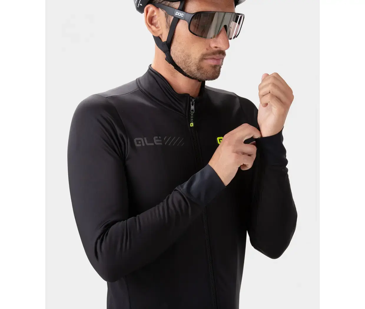 Dit ALE Solid Fondo 2.0 fietsjack met Windtex buitenlaag en Thermo Fleece is ontwikkeld voor winterritten. Dankzij de Windtex materialen ben je beschermd tegen regen en wind. Kou lijden hoeft ook niet vanwege het heerlijk zachte Thermo Fleece materiaal. Met dit jack trotseer je de winter, zelfs bij (natte) sneeuw. De performance fit van de Solid lijn van ALE is ontwikkeld voor toerrijders die liever wat minder nauwsluitende kleding dragen. Daarnaast is performance fit zeer geschikt voor het bouwen van laagjes, als zal dit met dit heerlijk warme jack niet zo snel nodig zijn. ALE heeft bij dit jack reflecterende elementen aangebracht waarmee je ook in donkere omstandigheden met een gerust hart de weg op kunt.