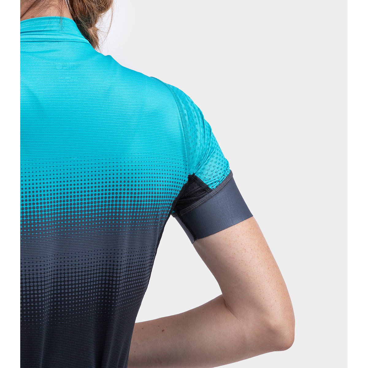 Het Alé PR-S Gradient Fietsshirt is ideaal voor in de zomer. Dit shirt heeft een hoog ademend vermogen en hij voert zweet goed af. Bovendien biedt dit shirt goede UV bescherming. In de drie steekzakken aan de achterkant heb je voldoende plek voor kleine accessoires, zoals je telefoon, sleutels en een energiereep. Dankzij de volledige ritssluiting trek je dit shirt gemakkelijk aan en uit en je kunt hem openritsen voor extra ventilatie. De reflecterende details zorgen voor een verbeterde zichtbaarheid.