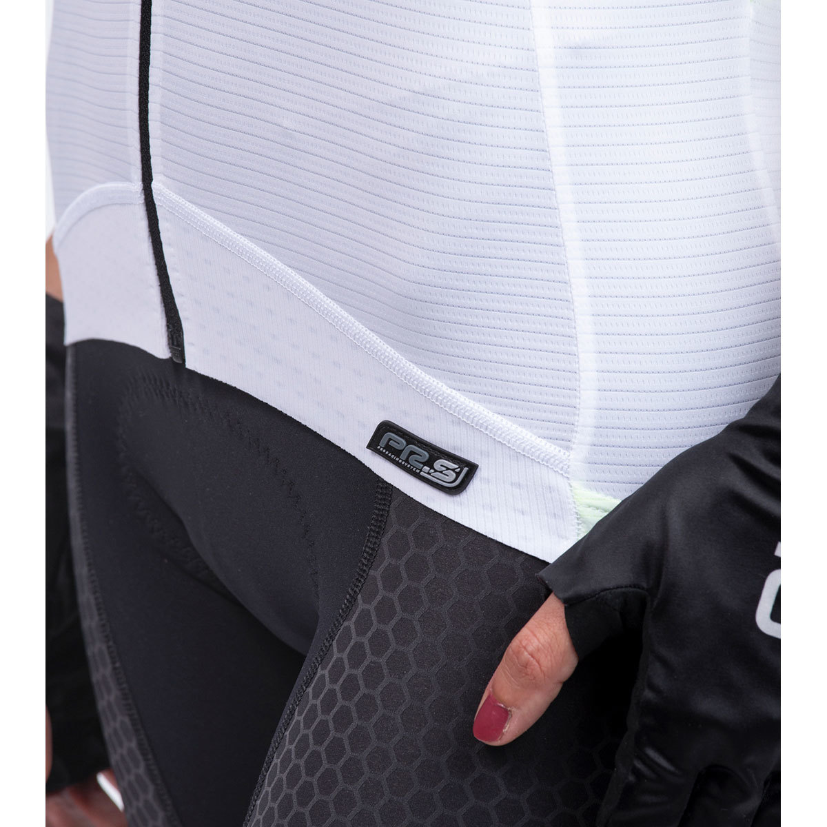 Het Alé PR-S Logo Fietsshirt is ideaal voor in de zomer. Dit shirt heeft een hoog ademend vermogen en hij voert zweet goed af. Bovendien biedt dit shirt goede UV bescherming. In de drie steekzakken aan de achterkant heb je voldoende plek voor kleine accessoires, zoals je telefoon, sleutels en een energiereep. Dankzij de volledige ritssluiting trek je dit shirt gemakkelijk aan en uit en je kunt hem openritsen voor extra ventilatie. De reflecterende details zorgen voor een verbeterde zichtbaarheid en de raw-cut mouwen sluiten perfect aan om je armen.