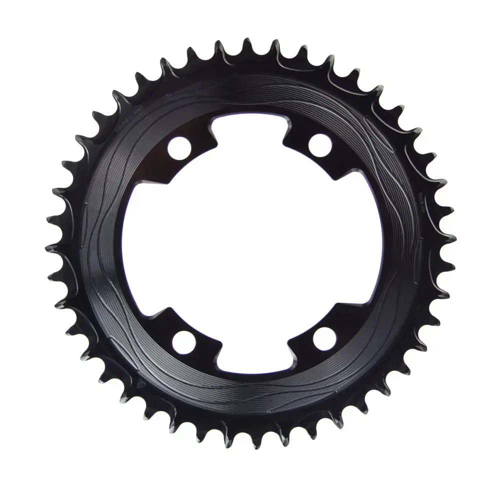 Het Alugear Round AERO 107 BCD SRAM Asymmetric Road/Gravel Kettingblad is een ultralicht en technologisch geavanceerd kettingblad, ontworpen voor maximale efficiëntie en duurzaamheid. Dankzij de CNC-gefreesde 7075-T6 aluminium constructie en industriële anodisatie biedt dit kettingblad niet alleen een laag gewicht, maar ook een hoge slijtvastheid en bescherming tegen mechanische impact. Het narrow-wide tandprofiel zorgt voor een optimale kettinggeleiding en voorkomt ongewenst aflopen, waardoor dit kettingblad perfect is voor 1x-aandrijvingen zonder voorderailleur. Geschikt voor gebruik met SRAM 107BCD Quarq en andere 107BCD asymmetrische spiders, maar niet compatibel met SRAM Rival cranks.