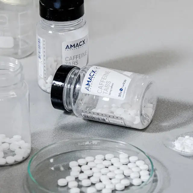 Eén capsule Amacx Cafeïne bevat maar liefst 100 mg cafeïne. Voor deze hoge dosis is gekozen, omdat onderzoek heeft aangetoond dat het gewenste effect van cafeïne het beste is bij 3 tot 5 mg cafeïne per kg lichaamsgewicht.