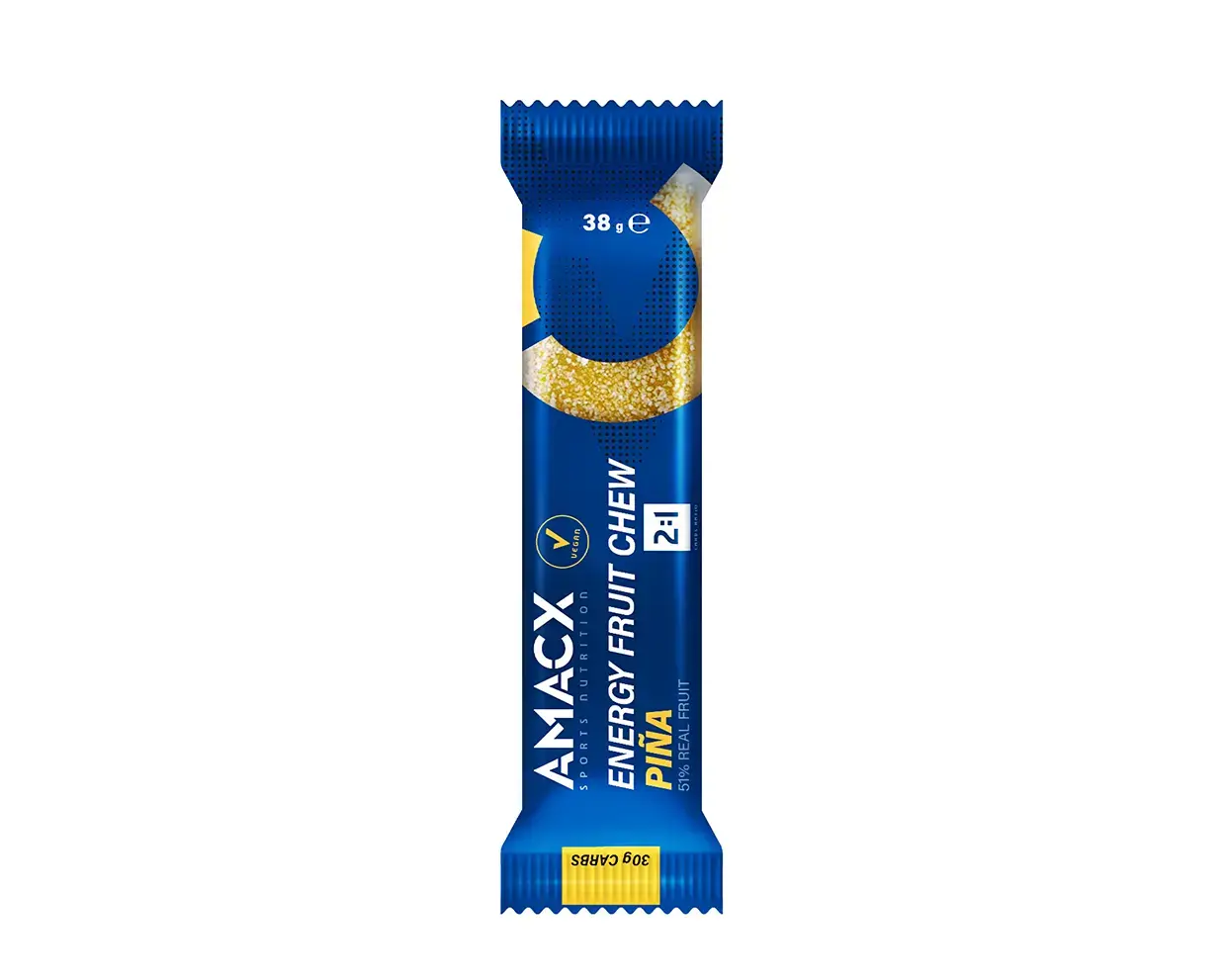 De Amacx Energy Fruit snoepjes zijn kleine reepjes die voor meer dan de helft uit echt fruit bestaan. De repen zijn zeer zacht, wat ze gemakkelijk te eten maakt tijdens een inspanning. Ook plakken ze niet in je mond door de gesuikerde buitenlaag. De snoepjes hebben een 2:1 koolhydraatverhouding. Dit maakt dat je meer koolhydraten per uur kunt opnemen met een kleinere kans op pijn in de buik. De reepjes zijn vegan en Gluten- en lactosevrij.