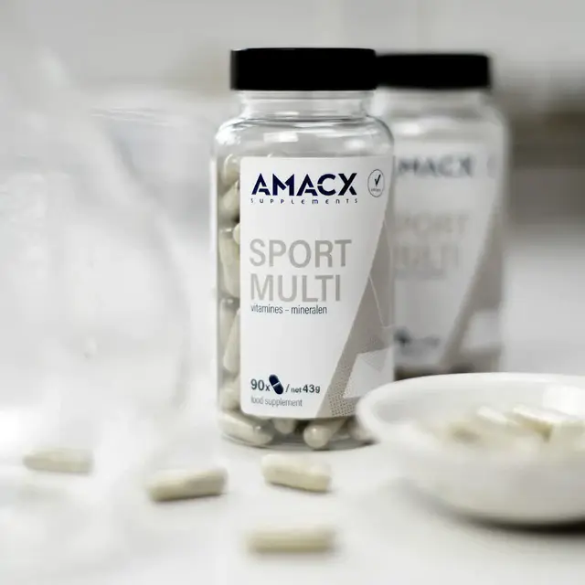 Amacx Sport Multi 90 Caps is een zorgvuldig ontworpen multivitamine met belangrijke micronutriënten. Bij de samenstelling is zoveel mogelijk gekozen voor optimaal opneembare stoffen en verbindingsvormen, in de juiste verhouding en dosering. Alles wat je nodig hebt voor het optimaal beoefenen van jouw lievelingssporten. De mineralen en vitamines verwerkt in deze multivitamine komen in de 100% ADH zodat je zeker bent van een afdoende inname. Sport Multi geeft extra energie en verhoogt de algemene weerstand. De multivitamine van Amacx is voorzien van een NZVT certificaat, wat betekent dat de sporter de garantie heeft een dopingvrij supplement te gebruiken.