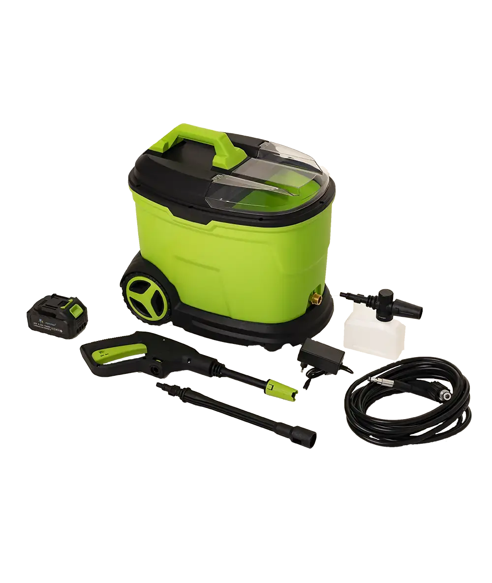 Met deze Aqua2Go EVO GD850 Mobiele Hogedrukreiniger is je fiets weer in een mum van tijd schoon en klaar om te knallen. De druk van de reiniger is instelbaar van 30 tot 60 bar, sterk genoeg voor grondige reiniging dus, maar zonder het risico je fiets te beschadigen. De hogedrukreiniger is verrijdbaar en gemakkelijk op te bergen mede dankzij de pistoolhouder en de klik-opberging voor de accessoires. De handige accu biedt een gebruiksduur van maximaal 50 minuten in de laagste stand en 30 minuten in de hoogste stand.