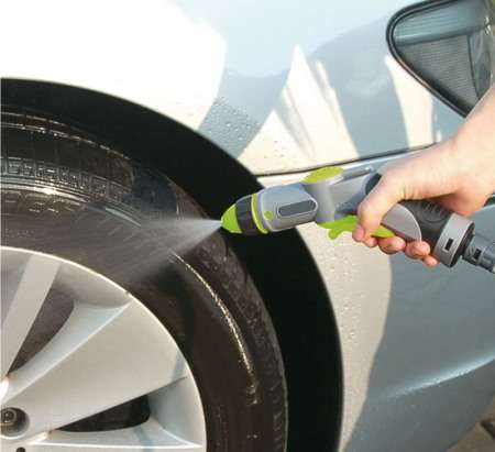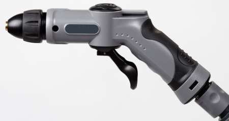 - Zacht én krachtig spuitpistool. De waterdruk is instelbaar van 3 tot 9 bar