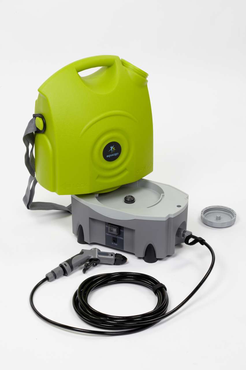 KamperenVoor kampeerders is de Aqua2go de ideale reispartner. Niet alleen uw uitrusting reinigt u in een handomdraai, u kunt de drukreiniger ook als frisse douche gebruiken.