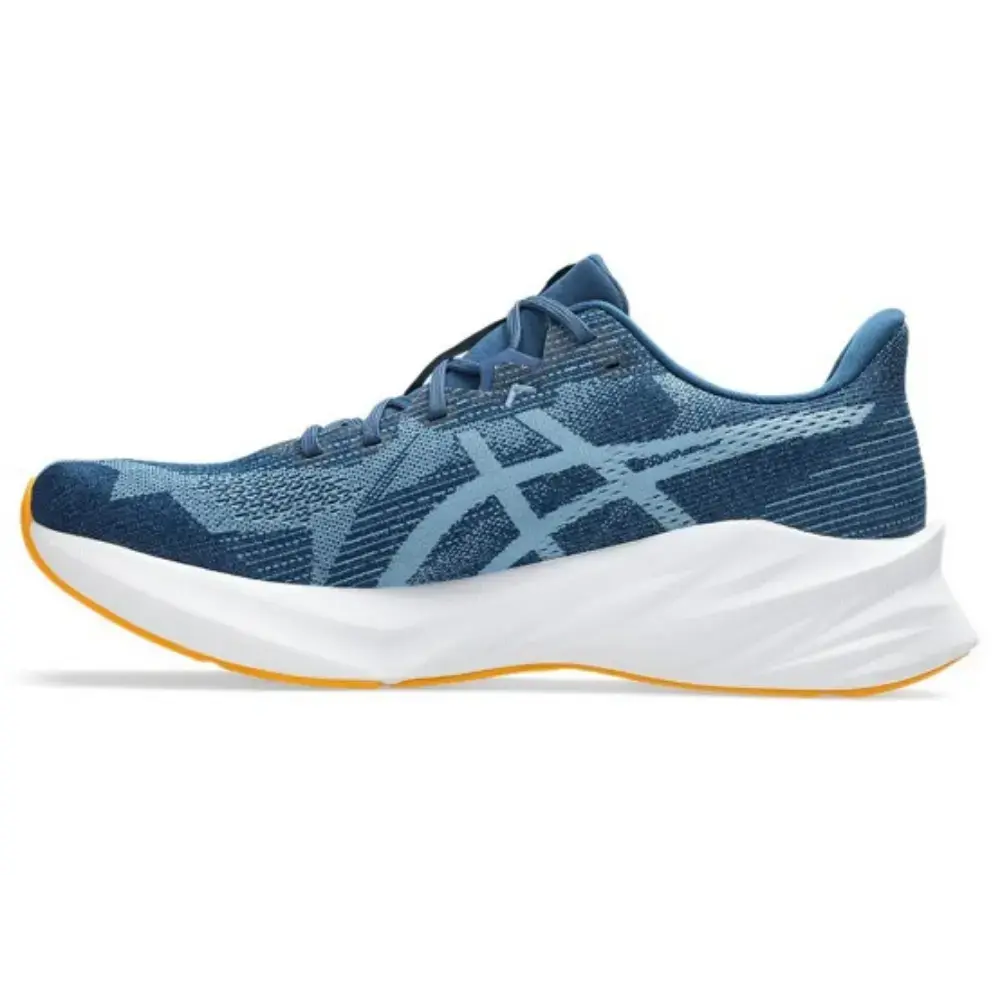 De ASICS Dynablast 5 Hardloopschoenen zijn neutrale hardloopschoenen met een superieure responsiviteit, zeer geschikt voor tempo en training. Het zachte geweven jacquard mesh bovenwerk en de tong van mesh verbeteren de pasvorm, luchtcirculatie en het comfort van de schoen. De middenzool en buitenzool zijn speciaal ontwikkeld om de hiel en de bal van je voet te ondersteunen tijdens het neerkomen. Zo krijg je meer energie en bounce met een dunnere zool. De FF BLAST PLUS demping zorgt voor responsieve veerkracht en lichte schokabsorptie, terwijl de OrthoLite X-30 inlegzool zorgt voor zacht instapcomfort. De rubberen AHAR LO-buitenzool biedt extra stevigheid en duurzaamheid. Minstens 50% van het bovenwerk is gemaakt van gerecycled materiaal om afval en CO2-uitstoot te verminderen. Ook het proces bij het kleuren van de binnenzool is verbeterd voor minder watergebruik en CO2-uitstoot.