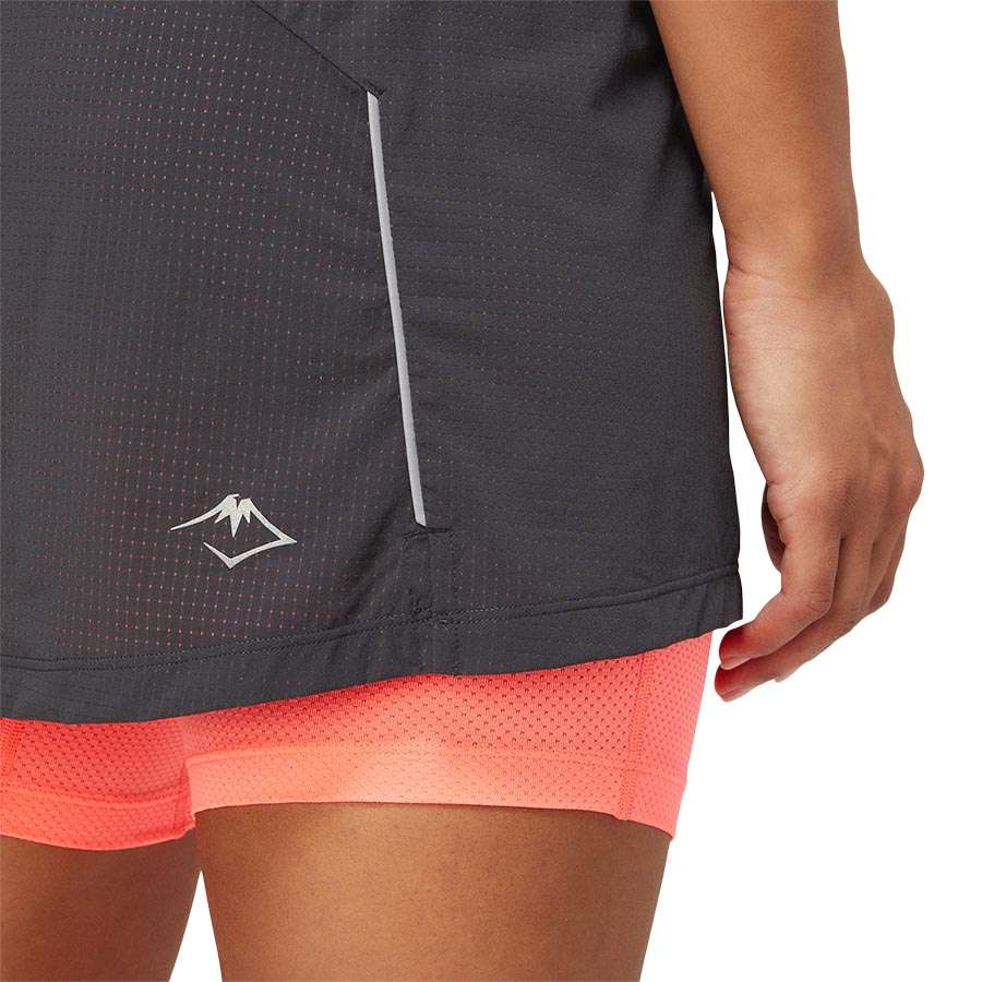 Deze ASICS Fujitrail Skort is gemaakt om je trails mee lopen. De rok heeft een DWR behandeling gehad, waardoor lichte regen je bovenbenen niet bereikt. De binnenbroek is gemaakt van lichtgewicht vochtabsorberend materiaal, ideaal voor lange runs. De riemzone is voorzien van een makkelijk toegankelijke zak, voor het opbergen van klein materiaal of gelletjes. De tailleband is elastisch, maar ook nog aan te snoeren door middel van een trekkoord met stopper.