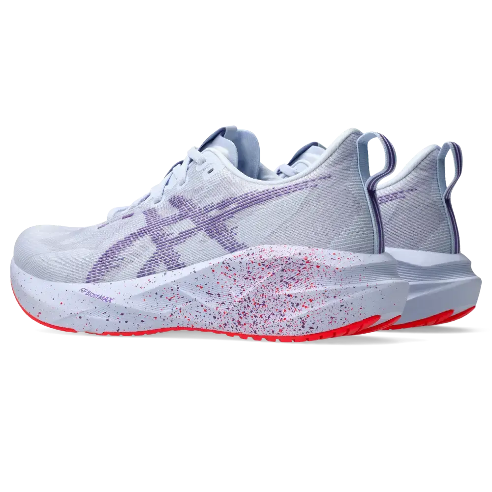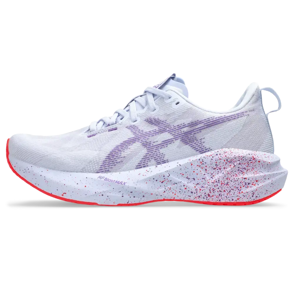 De ASICS Novablast 5 Tokyo editie garandeert een hogere energieteruggave bij elke stap door de FLYTEFOAM BLAST MAX-tussenzool. De buitenzool van AHAR® LO accentueert het energieke gevoel van de FLYTEFOAM BLAST-schuim tussenzool. Voor dames met een neutrale afwikkeling is dit de ideale trainingspartner. De hielversteviging ondersteunt de voet en zorgt voor een evenwichtigere pas. Daarnaast is ook de pasvorm verbeterd rond de middenvoet, waardoor voorkomen wordt dat de voet gaat glijden. Met de reflecterende details op de schoen ben je daarnaast beter zichtbaar in de schemering of het donker. De schoen bestaat deels uit gerecyclede materialen en ook bij het productieproces is aandacht besteed aan een zo laag mogelijke uitstoot en waterverbruik.