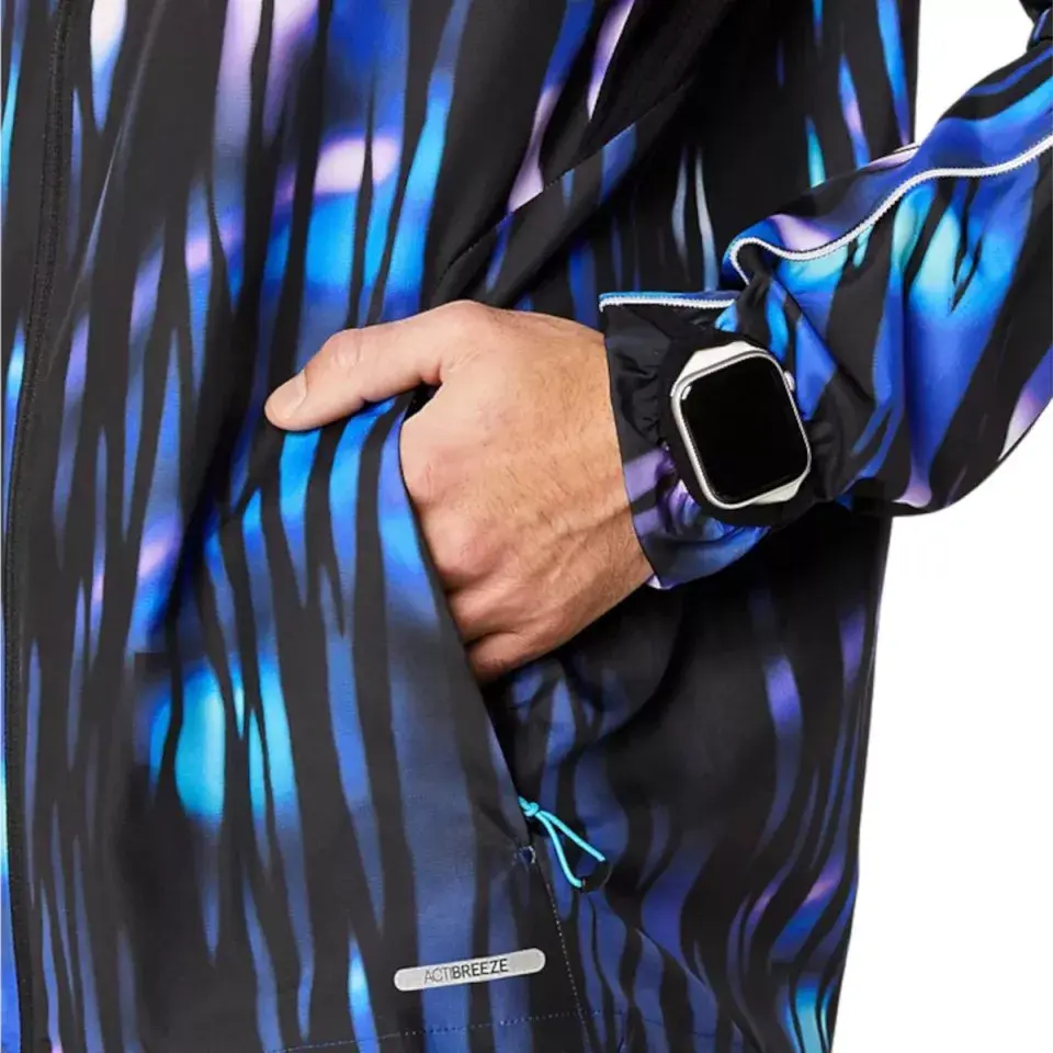 Dit hardloopjack is bestand tegen lichte regen en winddicht