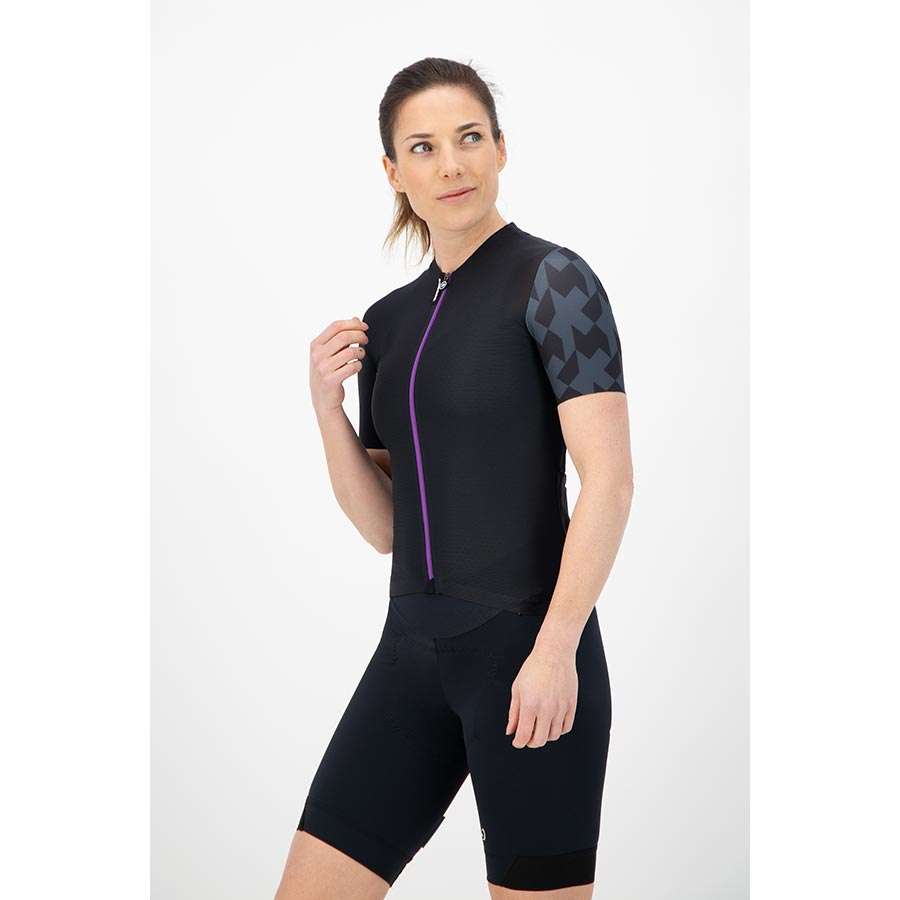 Specificaties Assos Dyora RS Summer Fietsshirt Korte Mouwen Dames- Materialen: 59% polyester, 27% polyamide, 14% elastaan