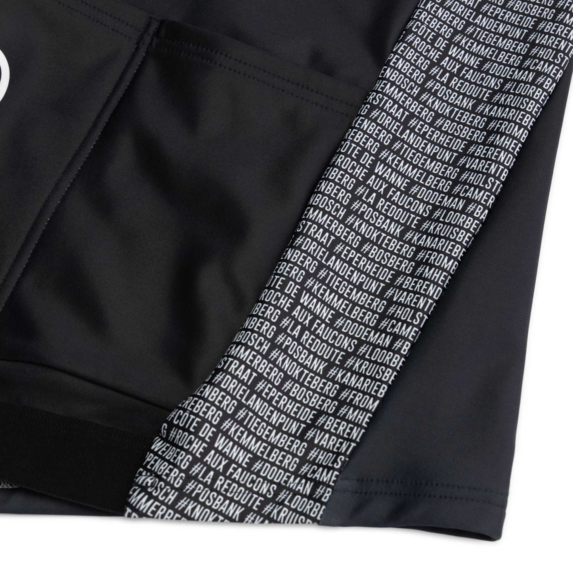 Het Assos #KLIMMEN Fietsshirt met Lange Mouwen is van hoge kwaliteit en speciaal ontworpen voor Futurumshop! Op de zijkant staan bekende en legendarische klimmen uit Nederlands en Vlaanderen. Het shirt is ideaal voor ritten in milde tot koude temperaturen. Daarmee wordt dit shirt vooral veel gebruikt in de herfst en lente. Toch kan hij ook goed in de winter worden gebruikt, in combinatie met een licht vest of winterjack. De binnenzijde is van geborsteld materiaal en daardoor heerlijk zacht. Dit rondgebreide materiaal is heeft een goede vochtregulatie en ademend vermogen. De pasvorm is ontspannen en minder strak dan Assos’ racefit. Op de voorzijde is een volledige rits aangebracht die ook deels open te zetten is om voor extra verkoeling te zorgen. Op de achterzijde zitten drie insteekzakken om sportvoeding, sleutels, telefoon en meer in mee te nemen.