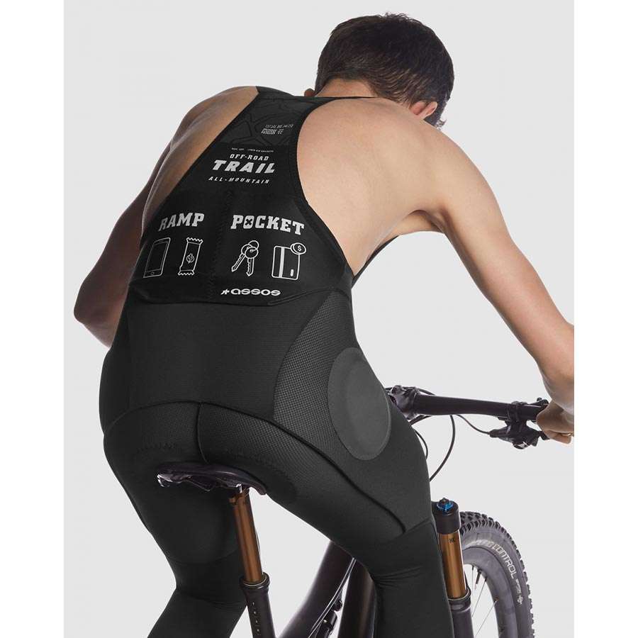 De Assos Trail Liner Driekwart Fietsbroek is perfect om onder je gewone, baggy mountainbikebroek te dragen. De broek kan ook goed gebruikt worden tijdens langere tochten in gewone kleding, bijvoorbeeld op fietsvakantie. De taille, het onderrugpaneel en de achterkant van de knieen zijn gemaakt van Push Pull-materiaal met een UPF 50+ bescherming. Deze stof ademend goed en droog zeer snel. De zeem is erg comfortabel en bewust wat dikker gemaakt op de achterzijde. Daardoor worden klappen en trillingen van onverhard terrein opgevangen. Zo kun je langer in het zadel kunt blijven zonder zadelpijn. De uiteinden van de broek hebben geen afgewerkte naden, maar sluiten naadloos aan op de huid. Dit zorgt voor een perfecte pasvorm en minder druk. Op de heupen zijn inzetstukken aangebracht die dienen als valbescherming. Deze hebben een hoog ademend vermogen, maar zijn ook los te halen voor nog meer bewegingsvrijheid en fietsend comfort.