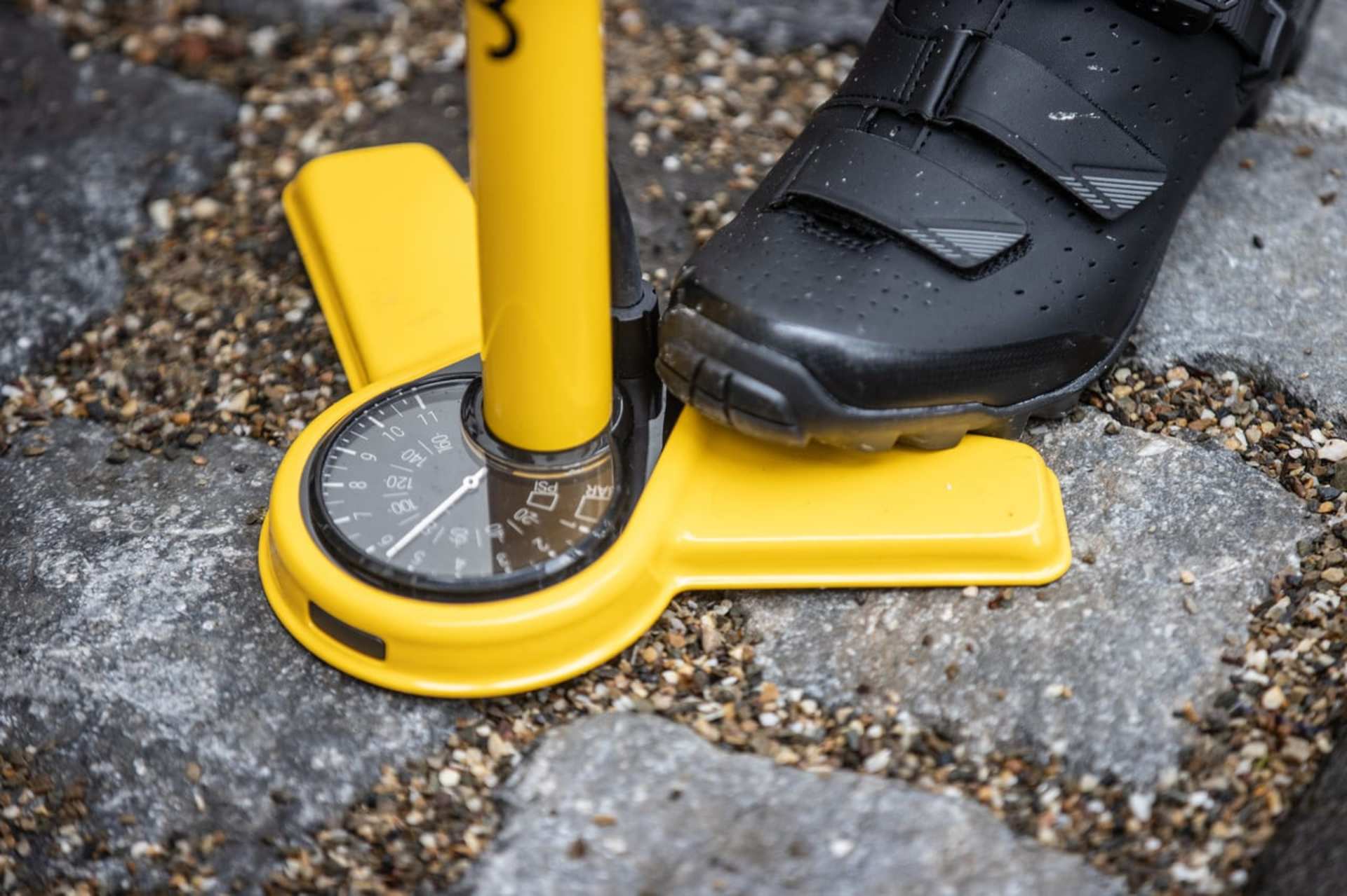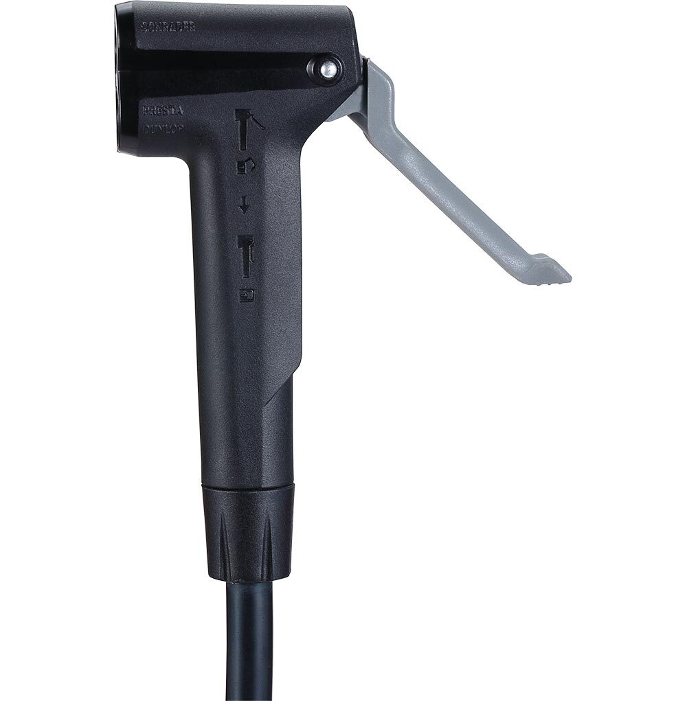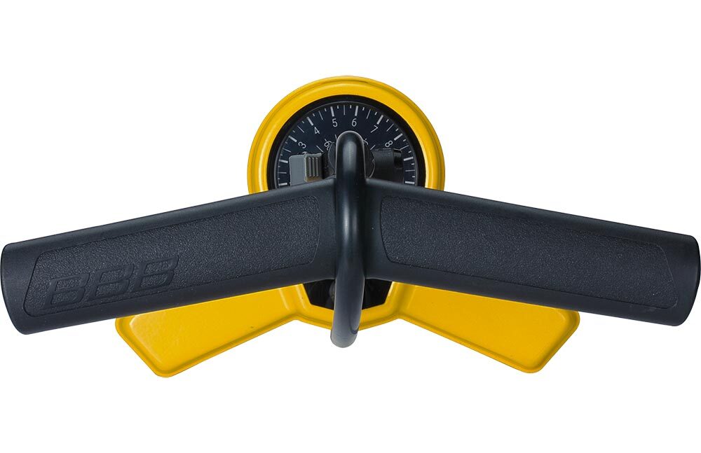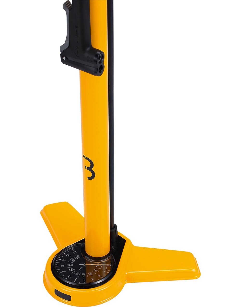 De BBB Cycling Airsteel BFP-27 Vloerpomp is voorzien van een handige drukmeter die zowel het aantal bar als de psi aangeeft. De maximale luchtdruk van de pomp is 11 bar (of 160 psi). Aan de 90 centimeter lange rubberen hoge druk slang zit een DualHead 3.0 pompkop met thumblock-hendel. De pompbuis en –voet zijn gemaakt van staal voor extra stabiliteit.