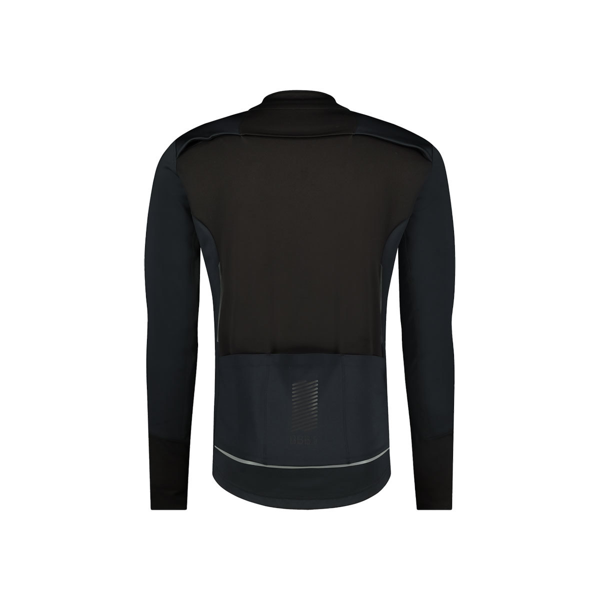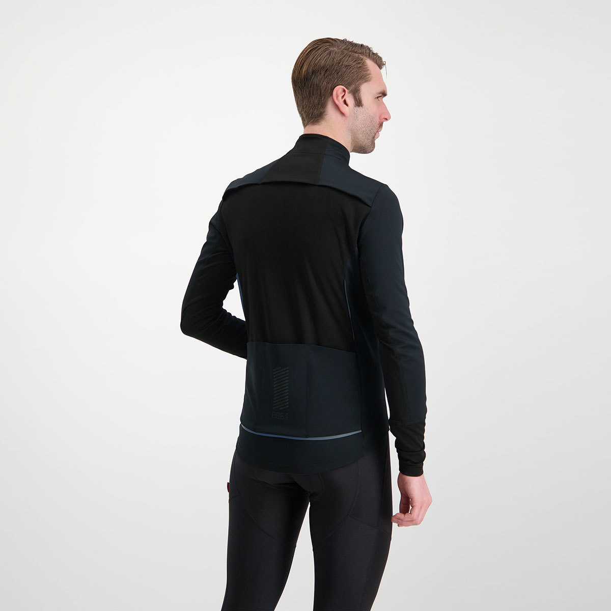 Dit TriGuard 3.0 BBW-456 Fietsjack is wel degelijk fietsjack, maar ziet eruit als een shirt met lange mouwen. De nauwsluitende pasvorm en elastische stof sluit perfect aan om je lichaam als je in de fietshouding zit (Sport fit). Dat is te danken aan het gebruikte Trilite-materiaal. Bijkomend voordeel van dat materiaal is dat het dit jack windbestendig en waterafstotend maakt. Het houdt wind en regen buiten (waterkolom 20.000), maar heeft wel een hoog ademend vermogen (20.000g/m2/24H). Zweet kan dus wel gewoon ontsnappen. Het jack wordt toch niet helemaal waterdicht genoemd, omdat de achterzijde is gemaakt van een ander materiaal. Dit is een heerlijk warm thermisch achterpaneel dat nog beter ademend. De uiteinden van de mouwen lopen taps toe en zijn van een elastisch materiaal. Je handschoenen schuif je er eenvoudig overheen. Zo bescherm je ook je polsen er armen tegen de elementen. Op de achterzijde zitten drie grote achterzakken en siliconen gripper die het jack op zijn plek houdt. Ook op de voorzijde zit een zakje met ritssluiting.
