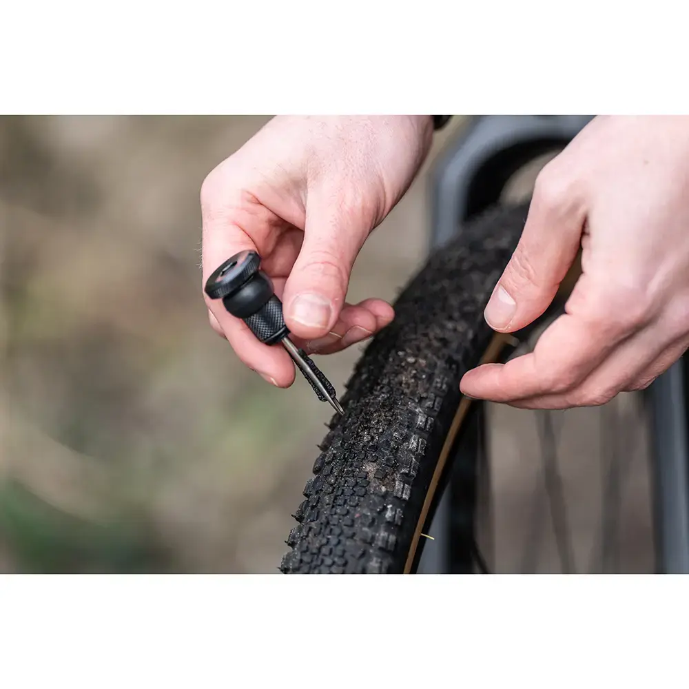Dit jaar tubeless beginnen rijden met de racefiets. Na lang rijden een gaatje in de band gehad wat de sealing niet dicht kreeg. Dus kon ik deze tool voor de eerste keer gebruiken. Wel eng dat je met deze scherpe tool in je band moet prikken maar het lek was nu wel gedicht. Is ook handig dat je de tools gewoon in je stuur kan bevestigen ipv stuurdoppen.