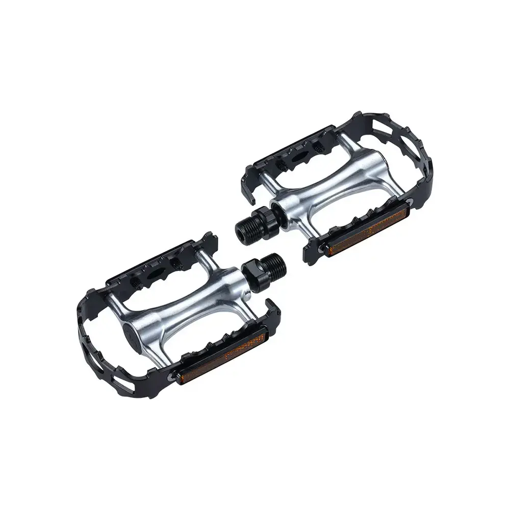 Deze BigFeet 2.0 BPD-16 MTB Pedalen zijn supersterk en geschikt voor ‘heavy duty’ gebruik. De body is gemaakt van koud gesmeed aluminium en daardoor supersterk maar licht van gewicht. De C3-kooi zorgt ervoor dat je voeten een groot oppervlak hebben om op te rusten. Het oppervlak is bedekt met een speciaal patroon dat je voeten op het pedaal houdt, je hebt zoveel mogelijk grip. Daardoor kun je ze ook goed gebruiken tijdens niet al te technische mountainbikeritten. Tenslotte reflectoren aan beide zijden van het pedaal om ervoor te zorgen dat andere mensen je in het donker op je fiets kunnen zien.