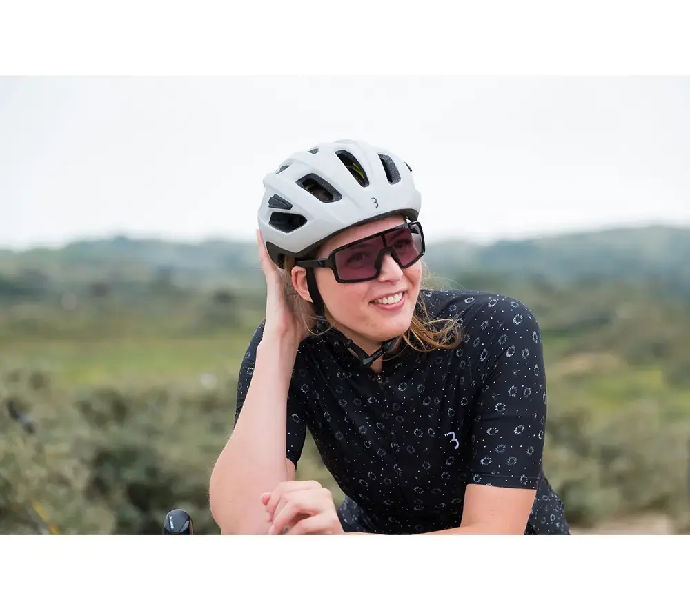 De BBB Cycling BSG-69 Chester Sport Zonnebril MLC biedt de uitstraling van een frameloze fietsbril, maar met de stabiliteit van de fietsbril met een volledig frame. Dit komt door het verborgen full frame ontwerp. De MLC coating zorgt voor een gelijk gekleurde lens. De lens is gemaakt van high-end, onbreekbaar Grilamid. De rubberen pootjes zorgen voor goede grip op het hoofd, zodat de bril goed op zijn plek blijft zitten. Het neusstuk is verstelbaar, zodat je zeker bent van een comfortabele pasvorm. De fotochromische lenzen kleuren mee naar de hoeveelheid licht die er is, zodat je hem in alle omstandigheden kan gebruiken. Zo hoef je niet meer van lens te wisselen.